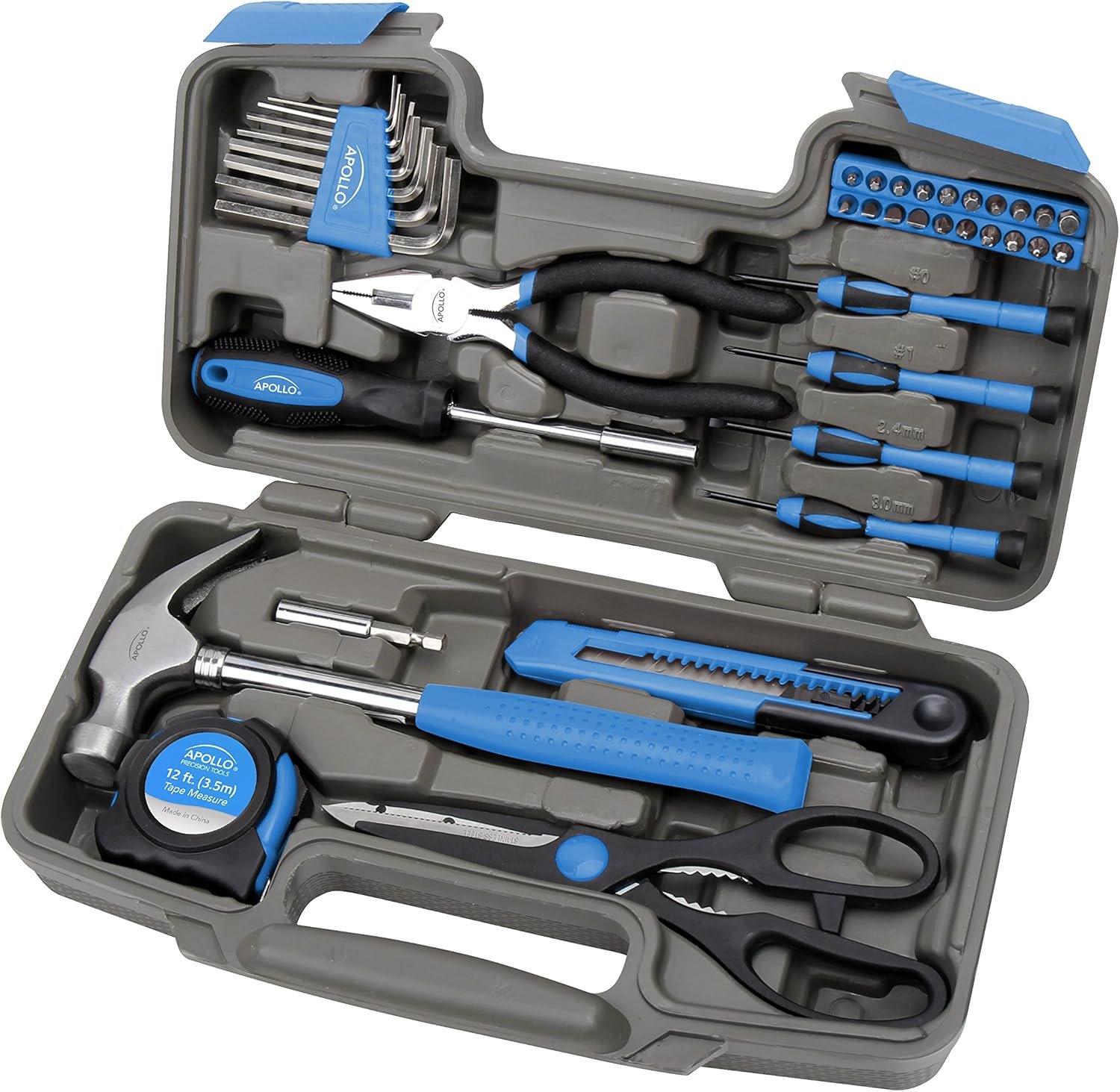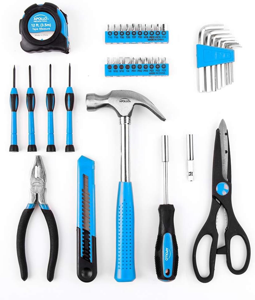 Apollo Tools Original 39 Piece General Household Tool Set in Toolbox Storage Case with Essential Hand Tools for Everyday Home Repairs, DIY and Crafts. Blue – DT9706 BL