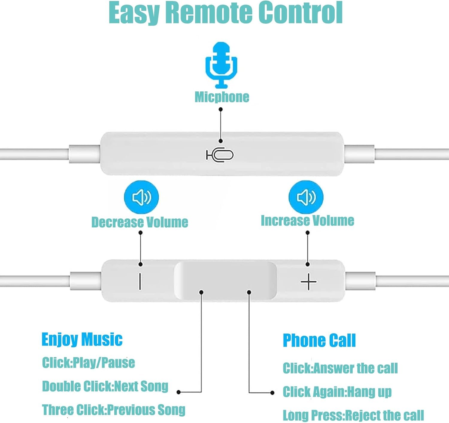 【High-Quality Sound】The iPhone Earbuds uses 100% copper core to provide lossless digital sound quality, supports 48KHz and 24-bit audio output, ensuring sound transmission stability and fidelity, allowing you to better immerse yourself in the world of music during exercise.