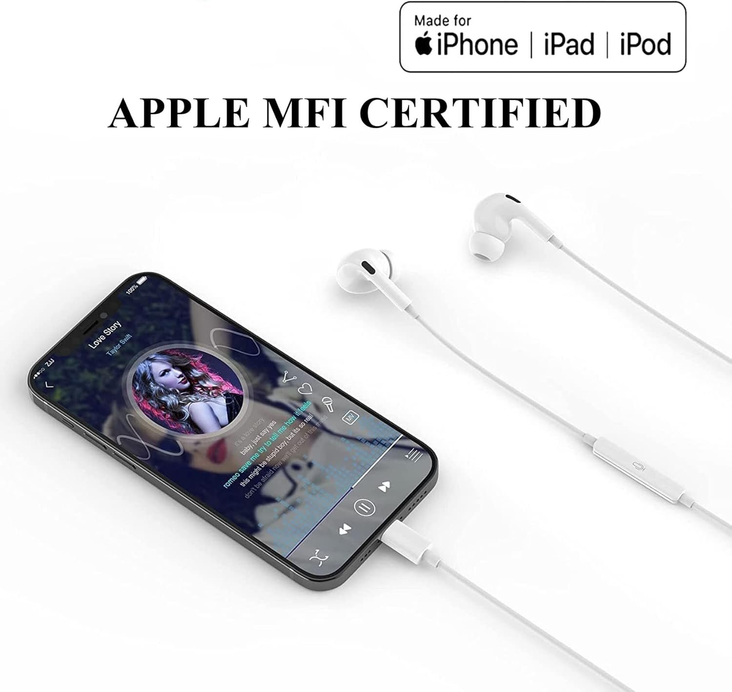 【Excellent Compatibility】Compatible with all lightning connector devices. Headphone are widely compatible with iPhone 14/13/12/11 Pro/Pro Max/iPhone X/XS/XS Max/XR, iPhone 8 & 8 Plus/7 & 7 Plus, Air 2/iPad Pro/Mini 4. Designed specifically for mobile phones, with built-in decoding chip, perfectly compatible with all IOS systems.