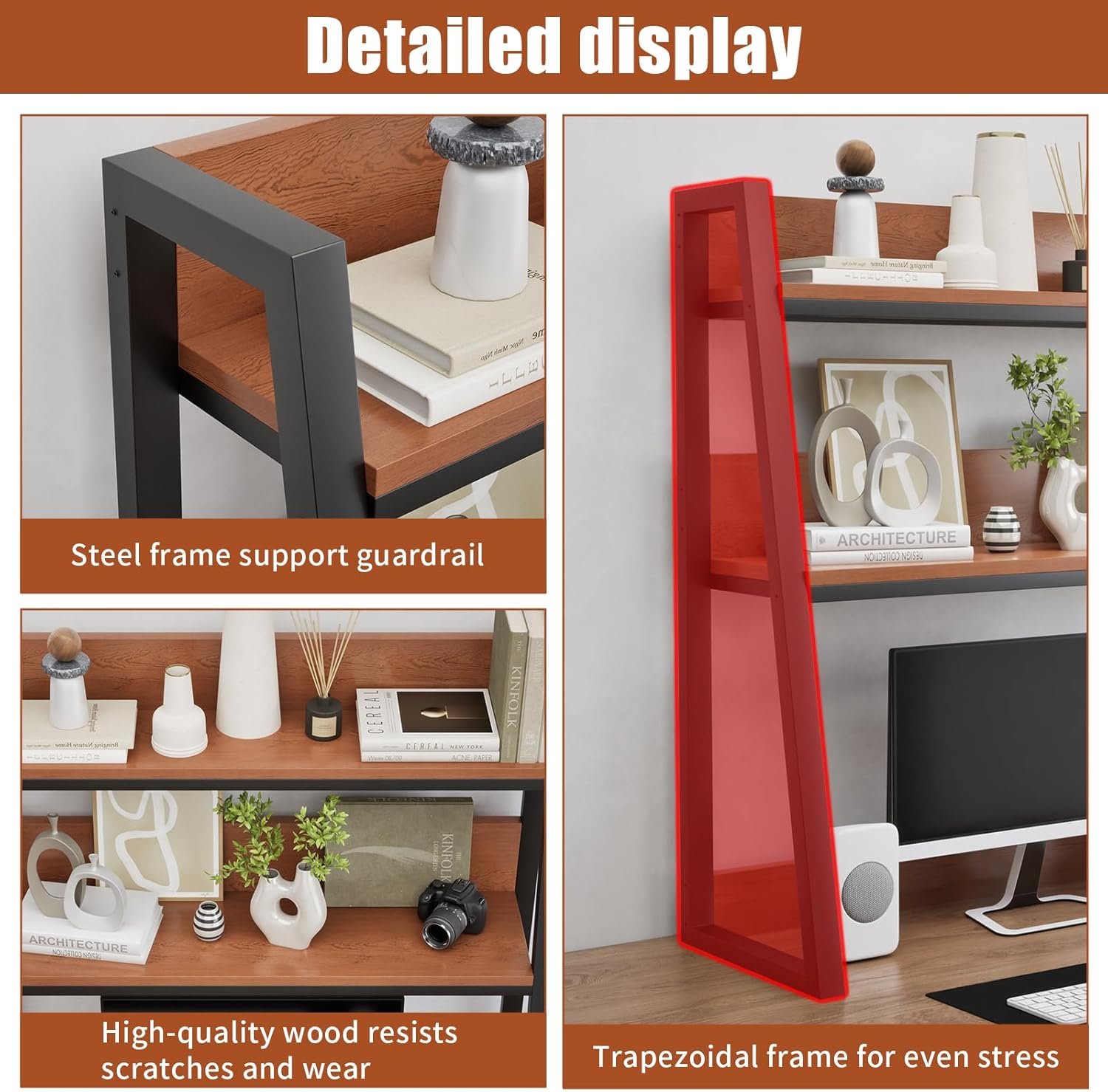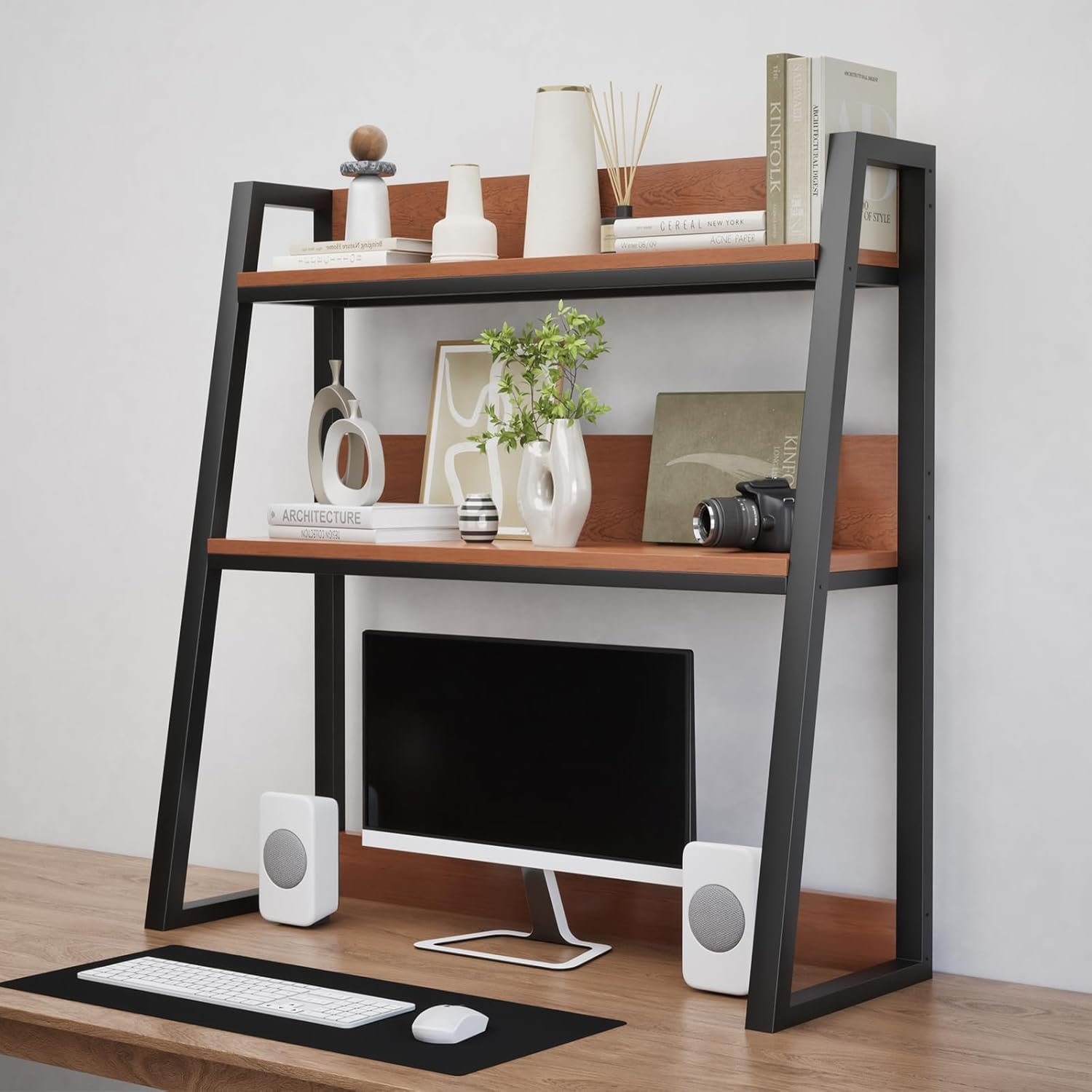 【Sturdy and Durable】This desktop hutch shelf is made of a high-quality steel frame and density board, durable, stable structure, and is easy to clean, the back plate design can prevent the placed items from slipping, and you can rest assured that you can use it, and vintage style desktop bookshelf can be a perfect blend of your room furniture decoration