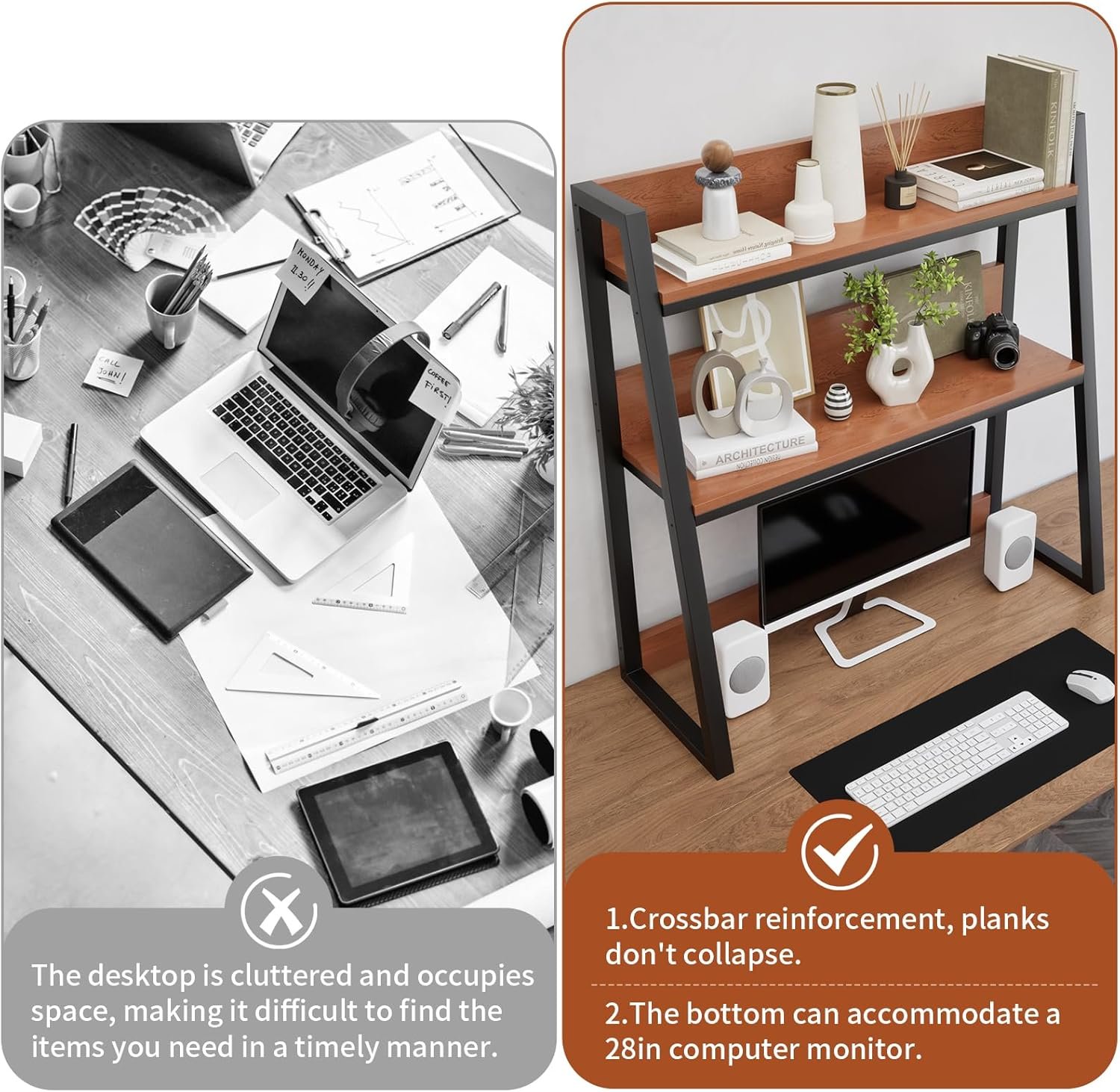 【Large Capacity Storage Space】The size of this 3-tier computer desktop bookcase is 35.43inch*29.53inch*12.6inch,the 2-tier multi-functional desktop organizer can help you store books, office supplies, small accessories, and other items, keep your desktop neat and orderly, suitable for use in the office, bedroom, dormitory Suitable for use in offices, bedrooms, dormitories, etc
