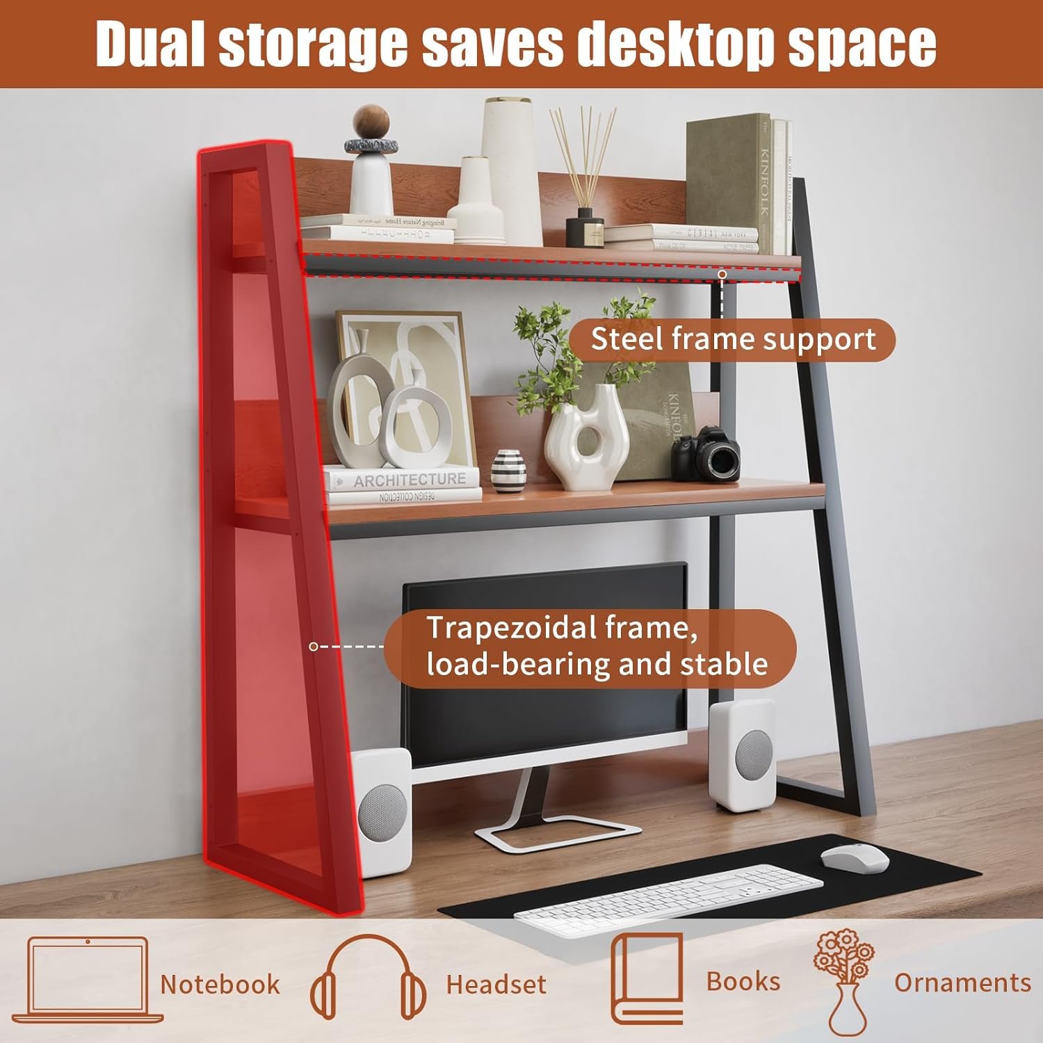 AQQHSAIN Desktop Hutch Shelf 2-Tier Ladder Bookshelf Computer Bookcase Wooden Desktop Display Rack Multipurpose Desk Hutch Top Only for Home Office Dorm Use (Brown, 75CM)
