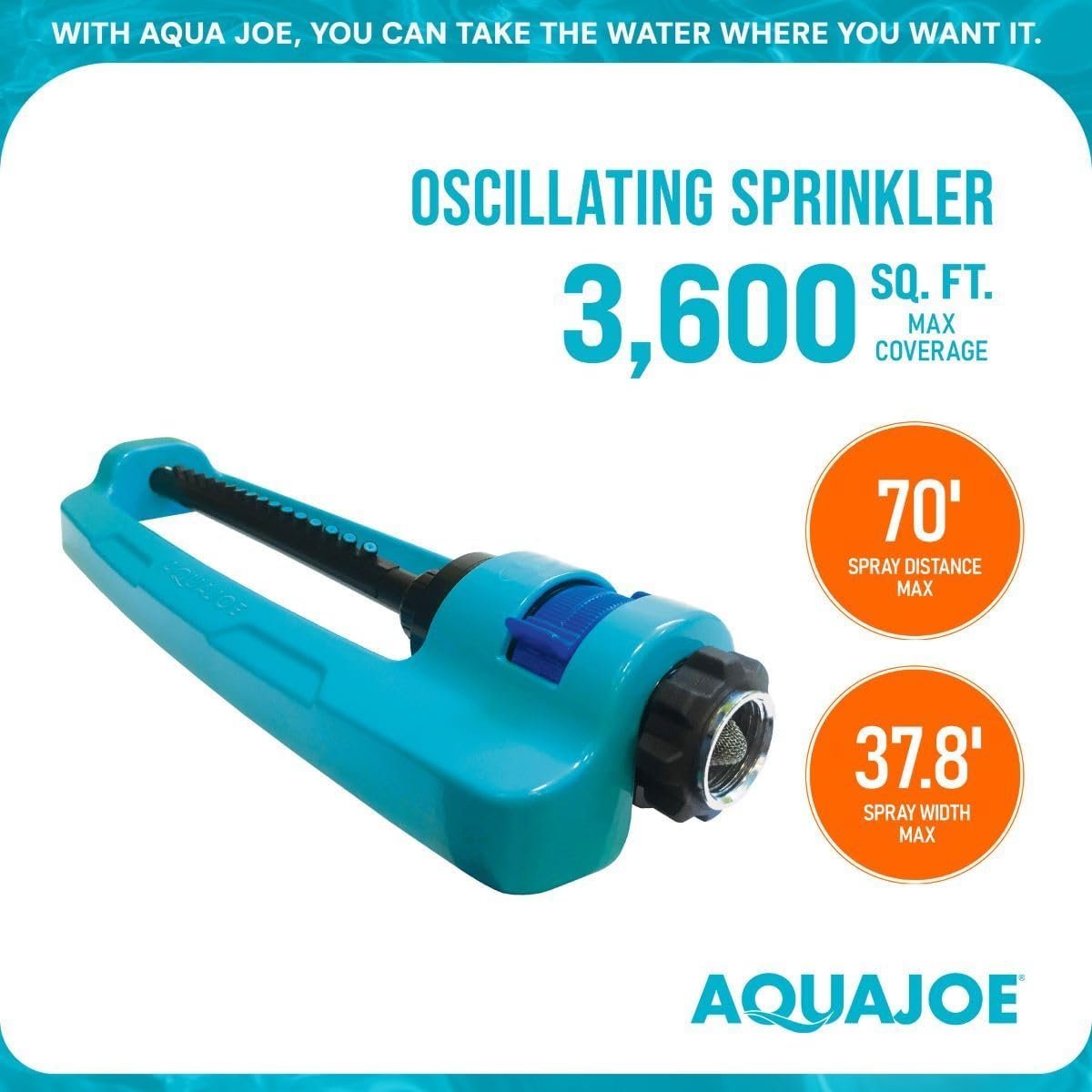 Aqua Joe SJI-OMS16 Indestructible Metal Base Oscillating Sprinkler with Adjustable Spray, 3600-Square Foot Coverage