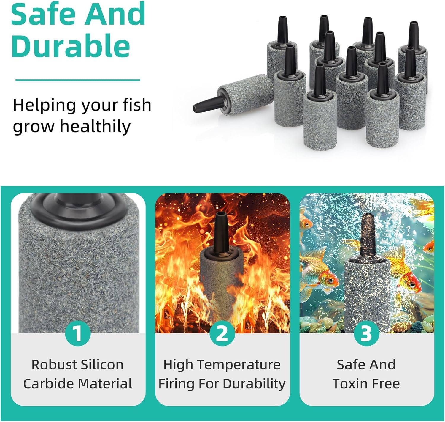 【Safe And Durable】: DaToo Air Stones is made of high quality silicon carbide material that is fired at high temperatures for safety and durability, safe and harmless to aquarium creatures. Its sturdy structural design allows the air stone to be used for a long time and efficiently oxygenates, helping your fish grow healthily.