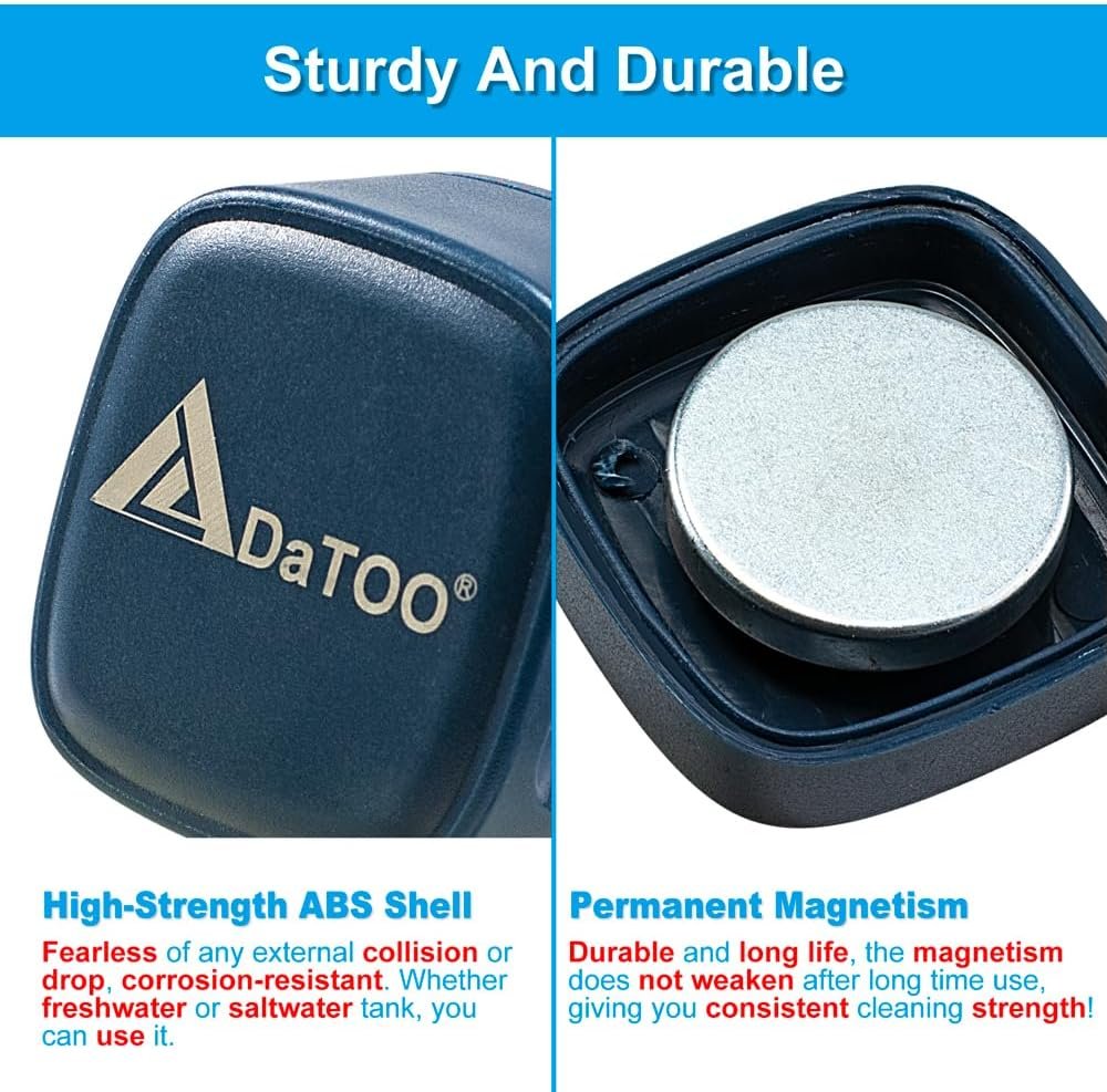 【Sturdy And Durable】: High-strength ABS shell, fearless of any external collision or drop, corrosion-resistant. Whether freshwater or saltwater tank, you can use it. Permanent magnetism, N38 NdFeB permanent magnet, durable and long life, the magnetism does not weaken after long time use, giving you consistent cleaning strength!