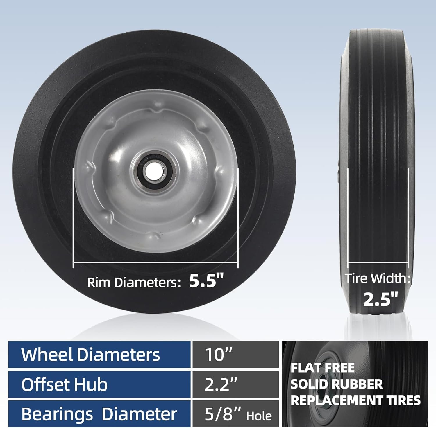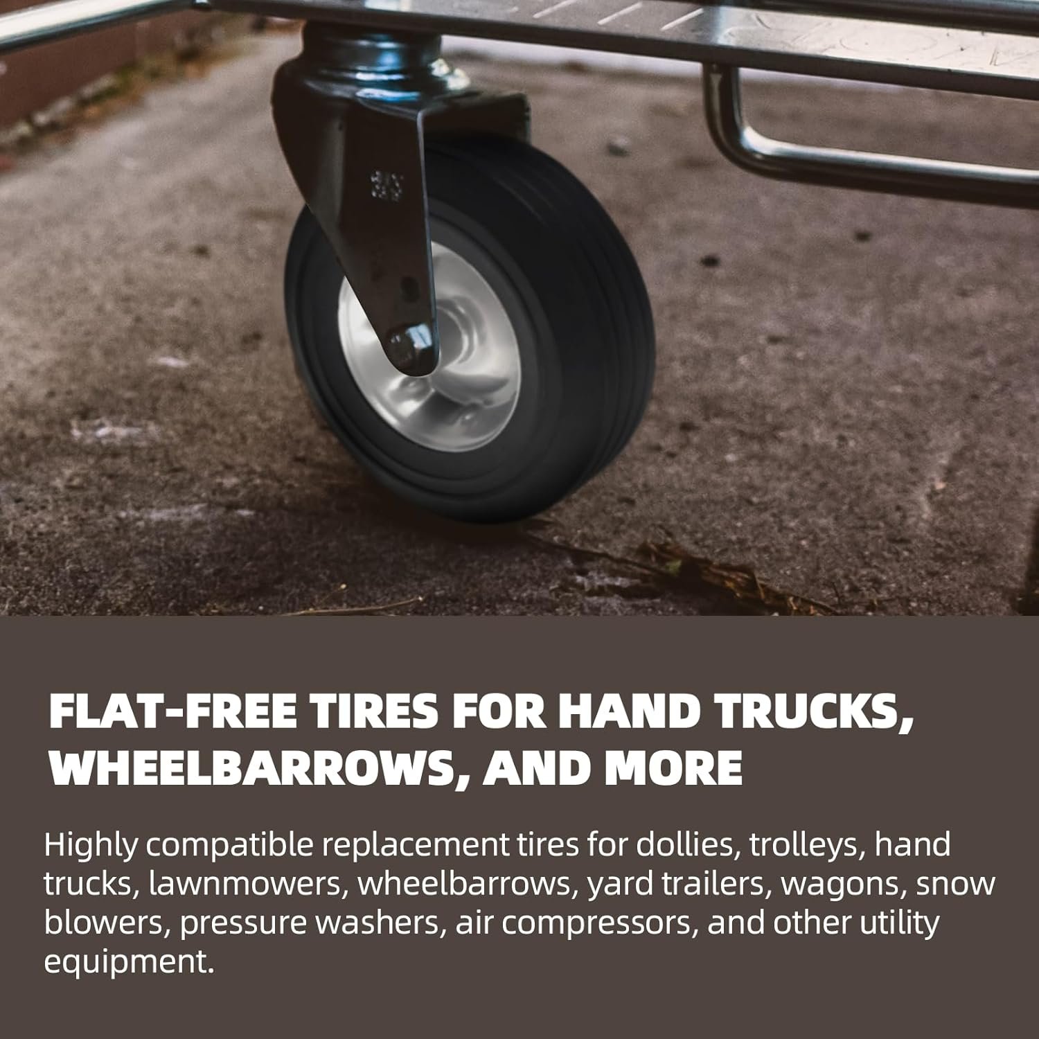 AR-PRO (2-Pack) 10″ x 2.5″ Flat Free Solid Rubber Replacement Tires – Flat-Free Tire and Wheel for Hand Trucks and Wheelbarrows with 5/8″ Axles