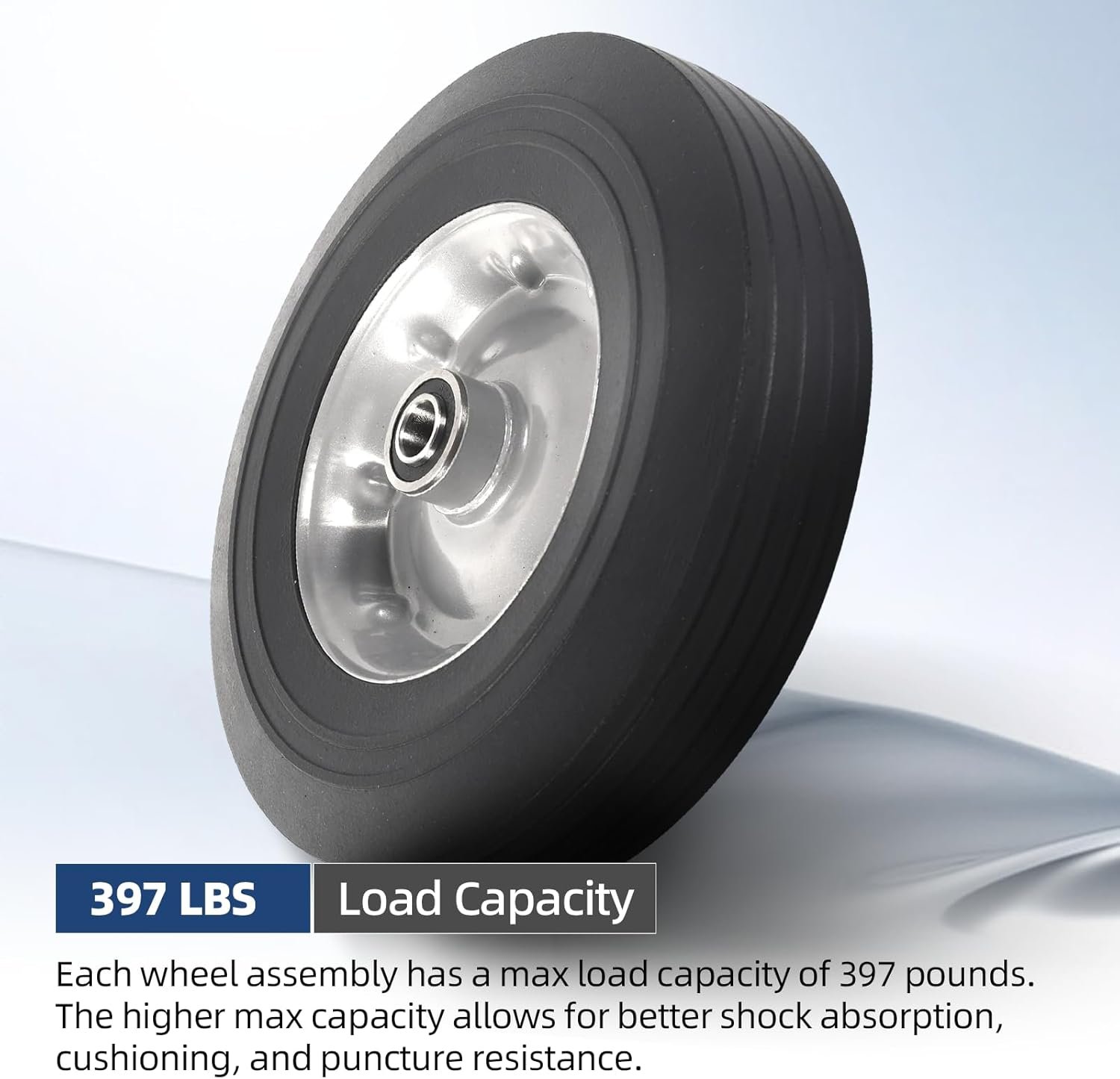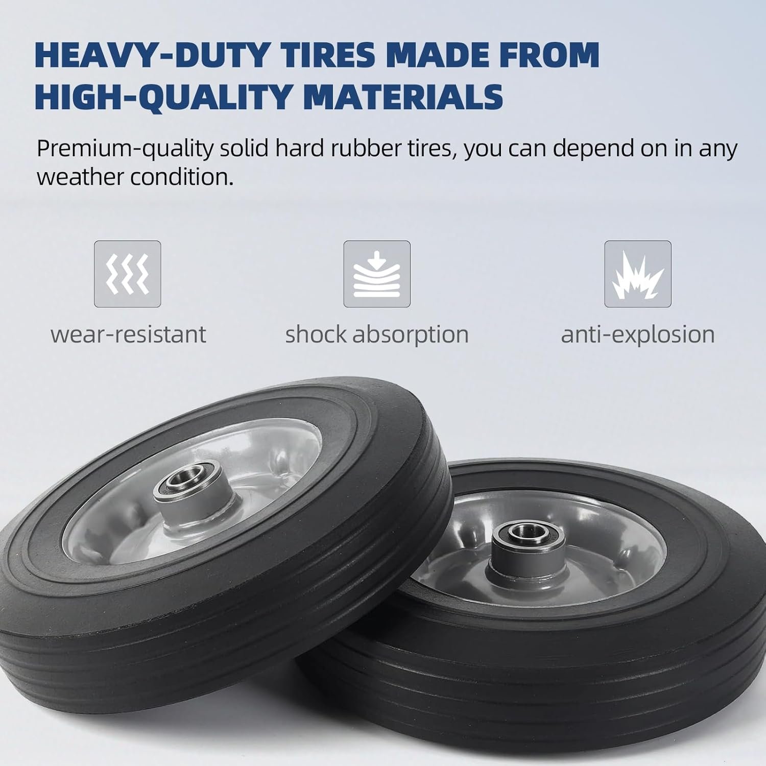 HEAVY-DUTY TIRES MADE FROM HIGH-QUALITY MATERIALS – These are solid rubber tires you can depend on in any weather condition. Made from premium-quality plastic and 100% natural solid hard rubber. Perfect for heavy-duty hauling and transporting applications with a maximum load capacity of 400 pounds.