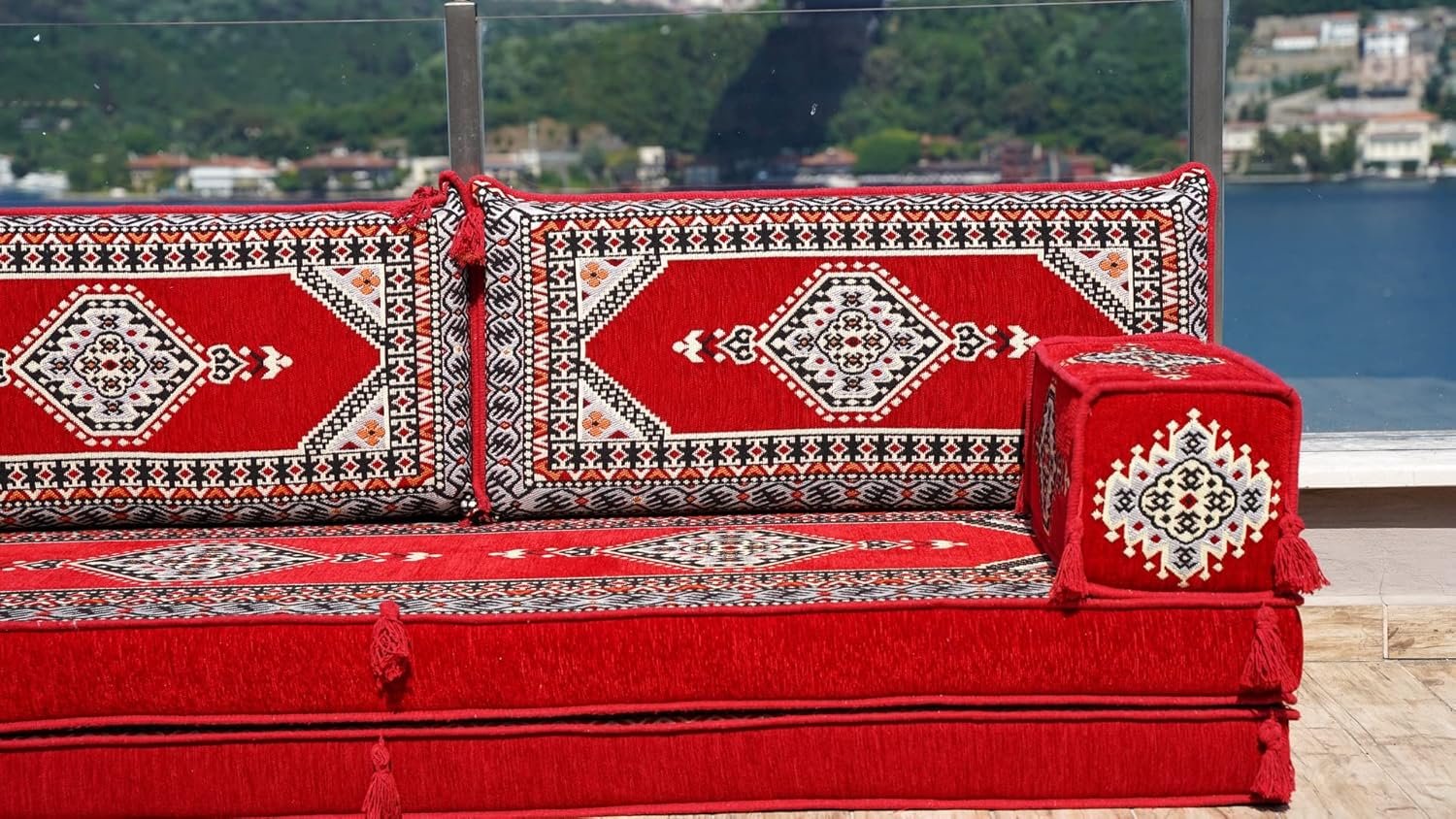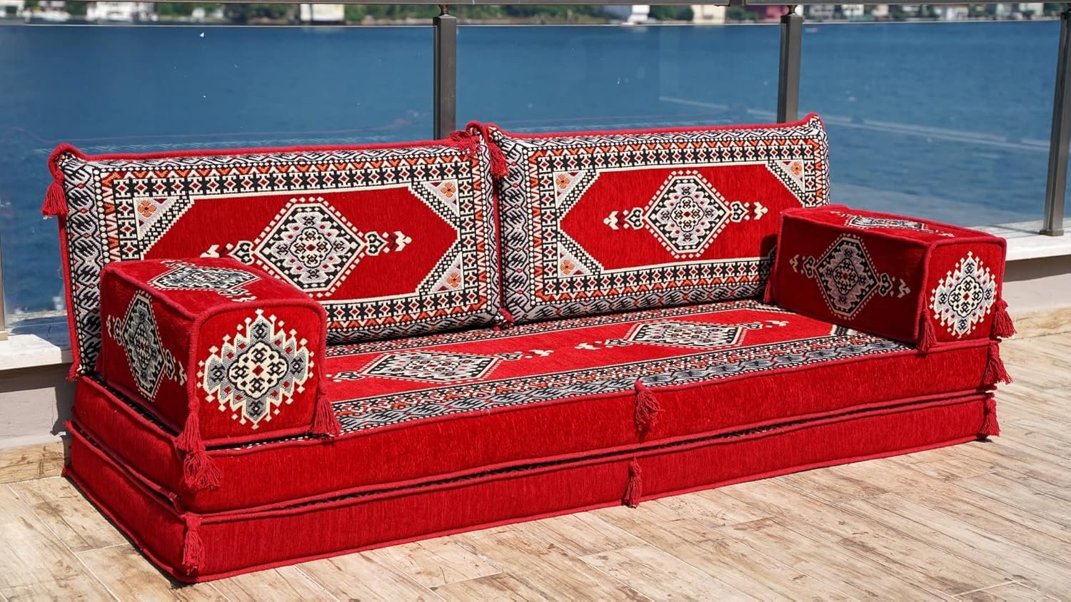 Arabic Floor Sofas, Moroccan Rug, Arabic Jalsa, Sectional Sofa, Oriental Sofa, Moroccan Floor Cushions, Ottoman Couch (8” Thickness Sofa, Sofa Only, Red)