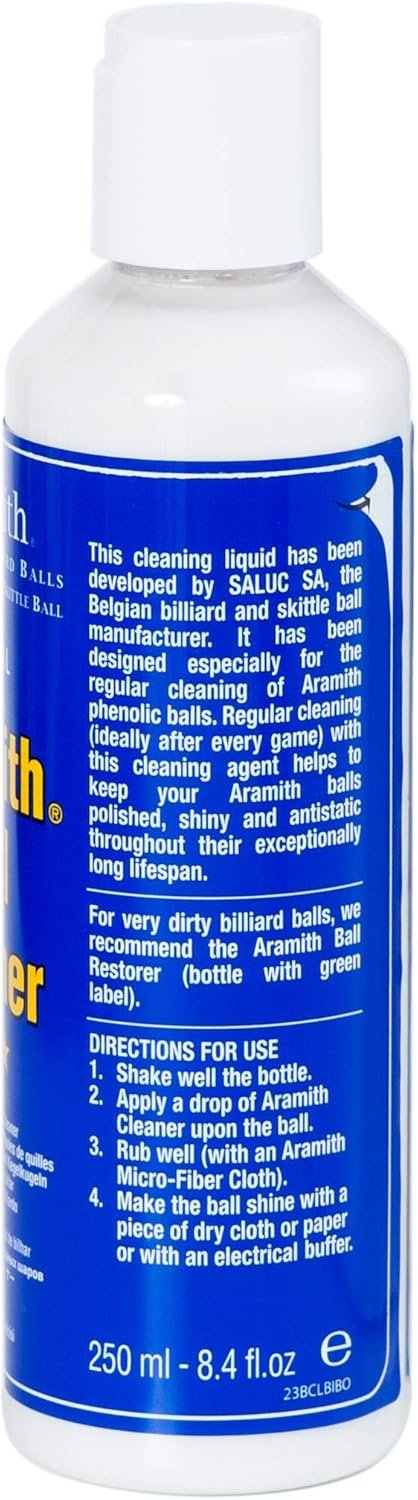Regular cleaning (ideally after every game) with Aramith Ball Cleaner helps to keep your Aramith balls polished, shiny and antistatic throughout their exceptionally long lifespan