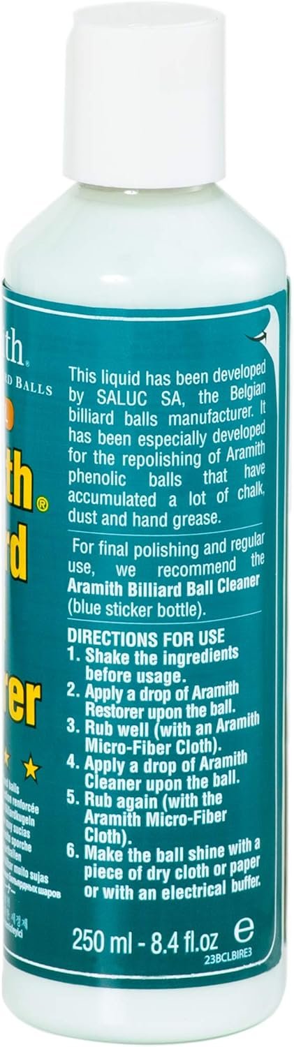 Remove the very hardy spots with the Aramith Ball Restorer. Finish the cleaning and polish with the Aramith Ball Cleaner