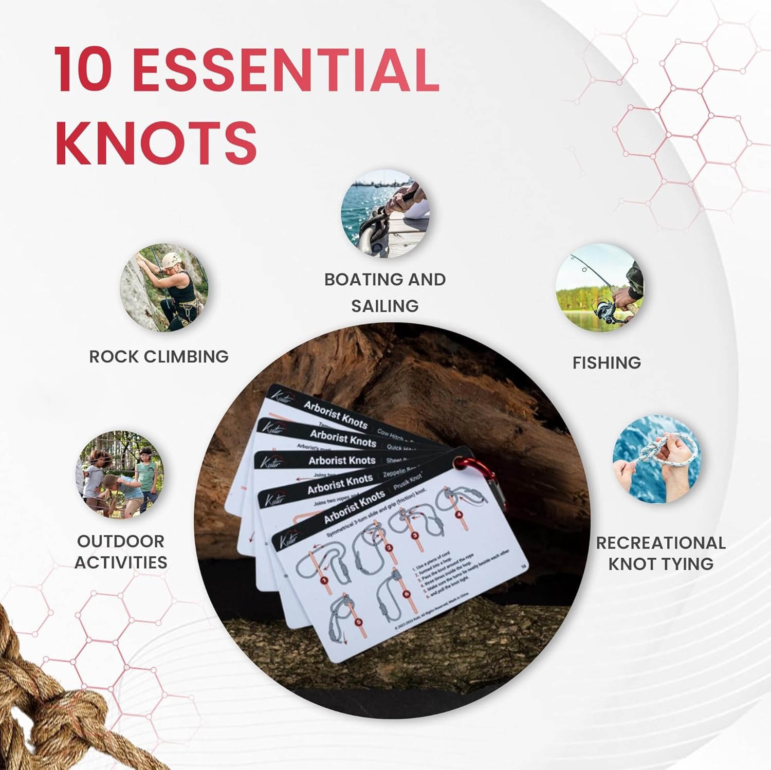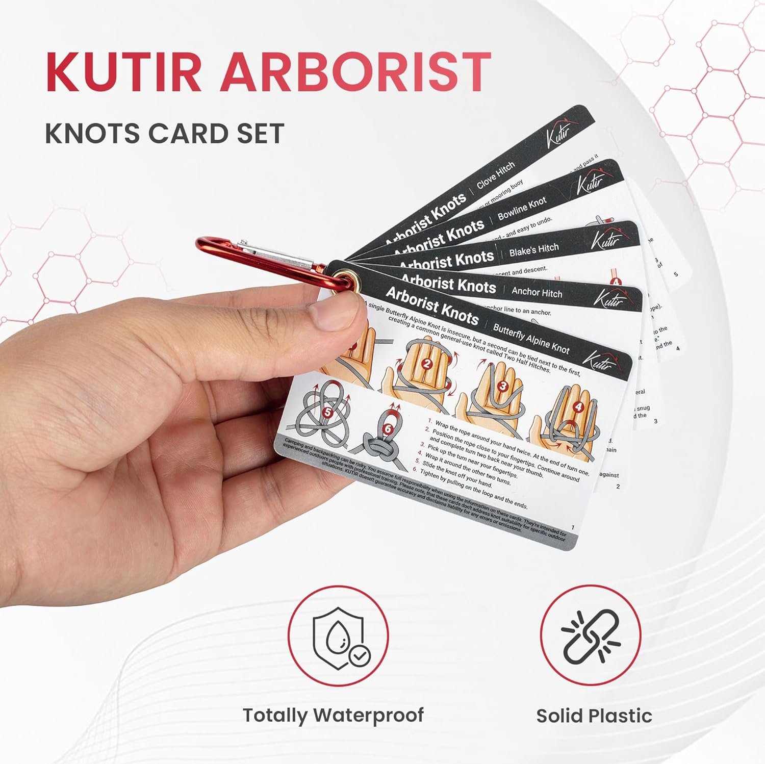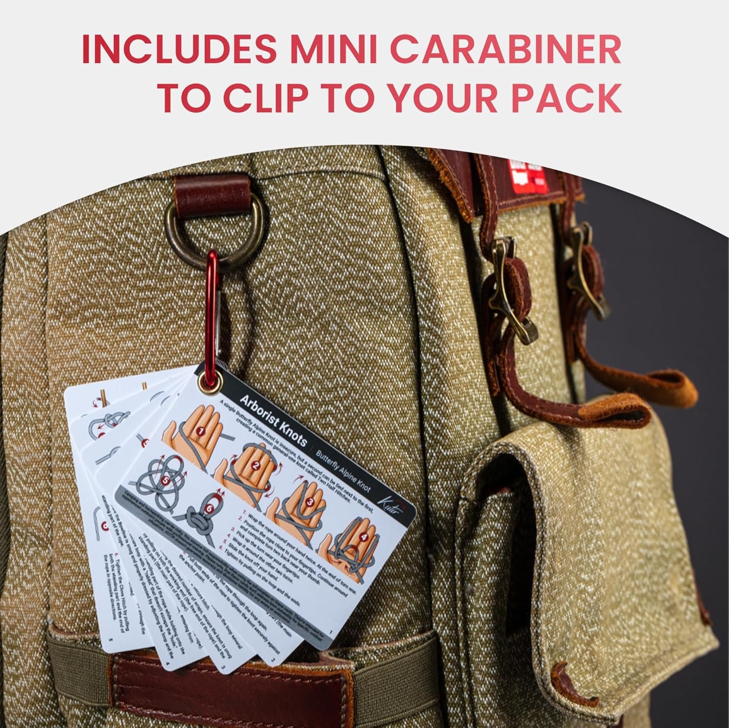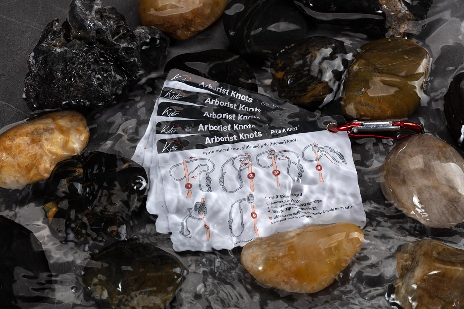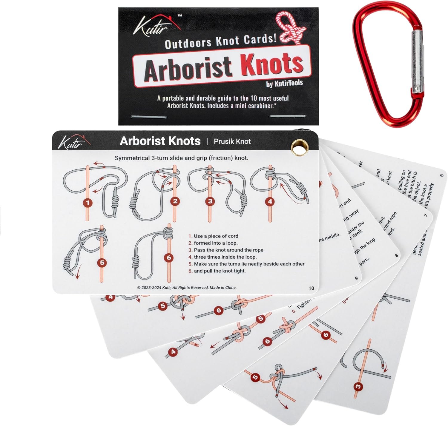 Arborist Knots Card Set – 10 Essential Knots for Camping, Climbing, & More – Waterproof Pocket Guide with a Carabiner
