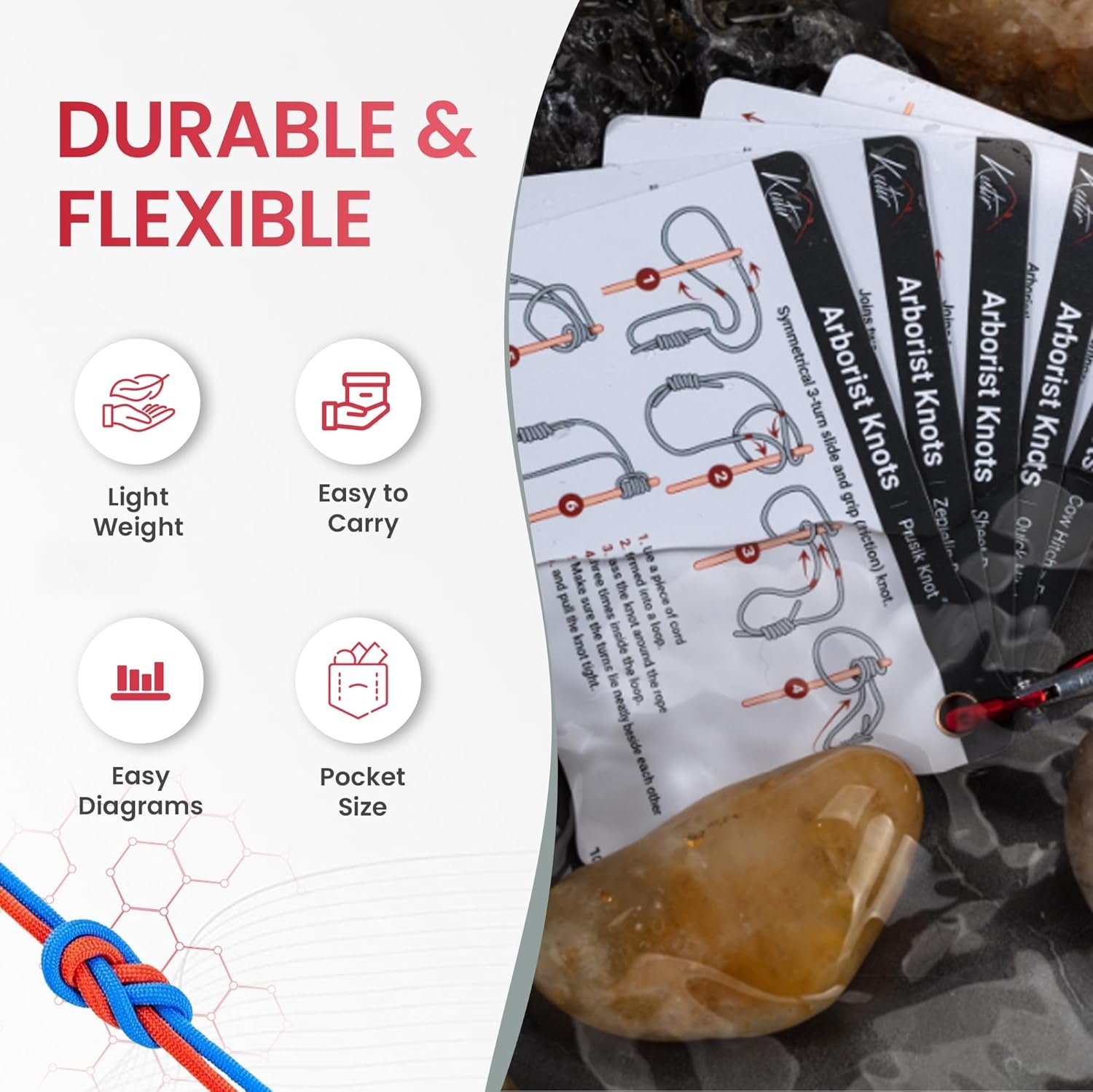 👉 [ 𝗨𝗻𝘄𝗮𝘃𝗲𝗿𝗶𝗻𝗴 𝗗𝘂𝗿𝗮𝗯𝗶𝗹𝗶𝘁𝘆 ]: Our knot card is built to withstand the elements. Crafted on super-thick, waterproof plastic stock, it’s your reliable companion in rain or shine, ensuring your knot-tying skills stay sharp.