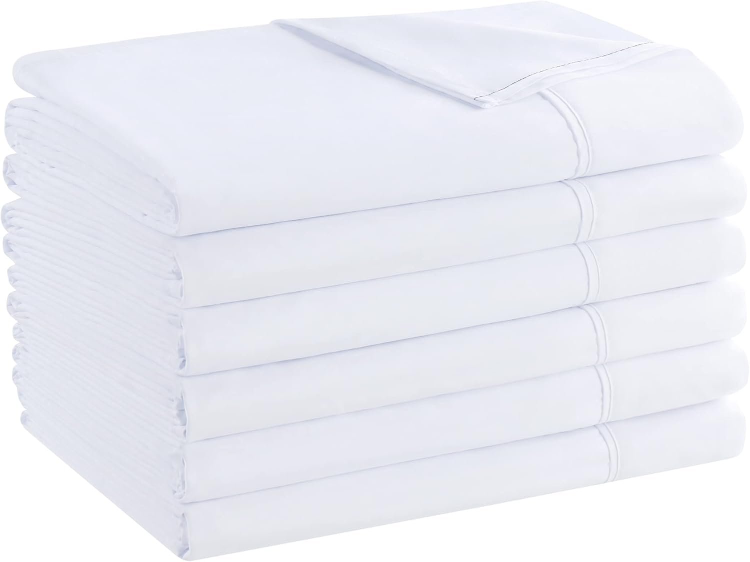 Arkwright Bulk Twin Flat Sheets – Pack of 6 – Soft Brushed Microfiber Hypoallergenic Top Sheet only with Wrinkle Resistant, Bedding Essentials for Hosts and Hotels, White