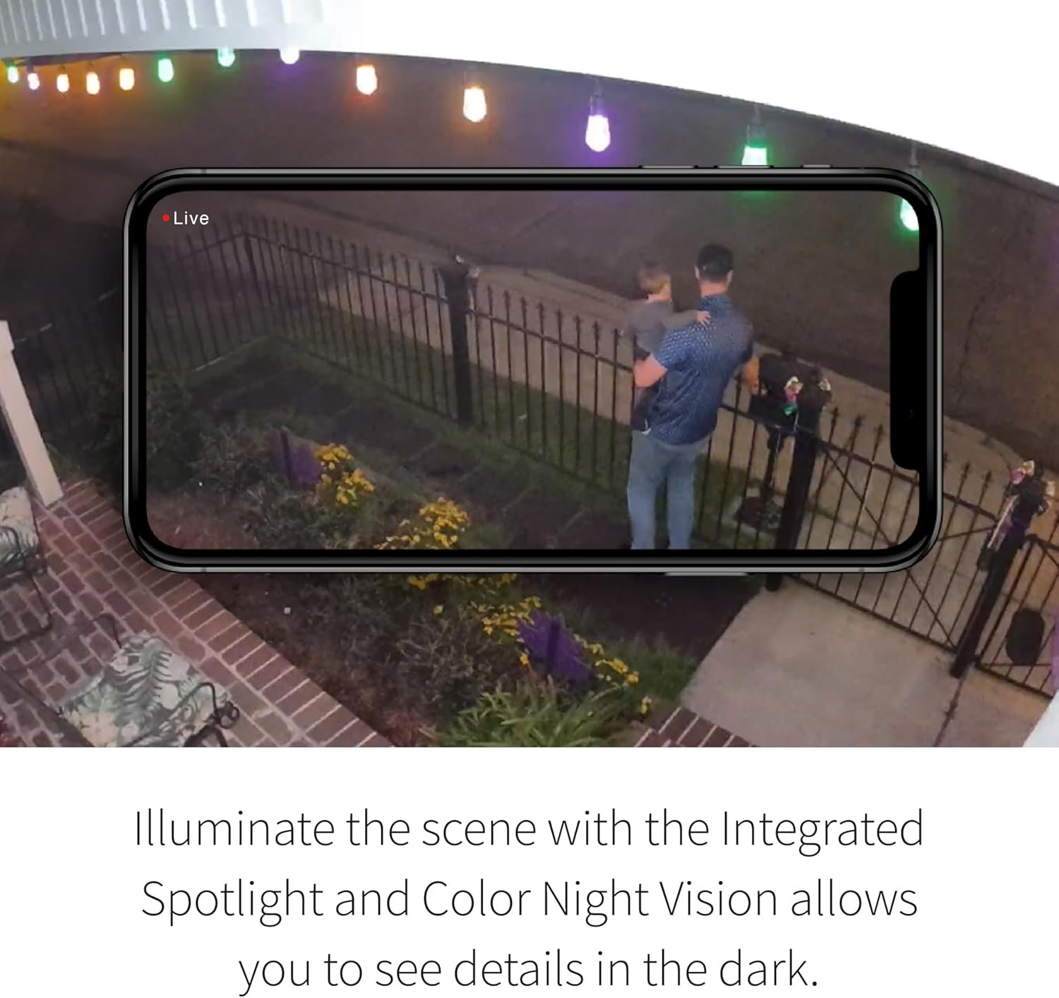 Don’t miss a moment with the Arlo Secure App: Get real-time notifications with motion activation & live video 2-Way Audio, streaming in the Arlo app. Remote siren activation, Color Night Vision & large Field of View (130 degrees) & Integrated Spotlight.