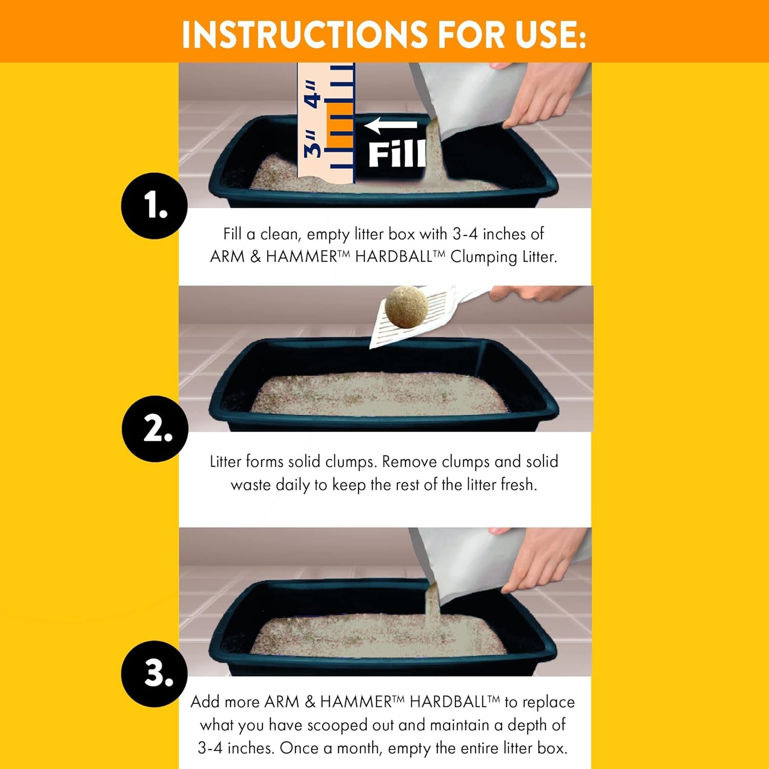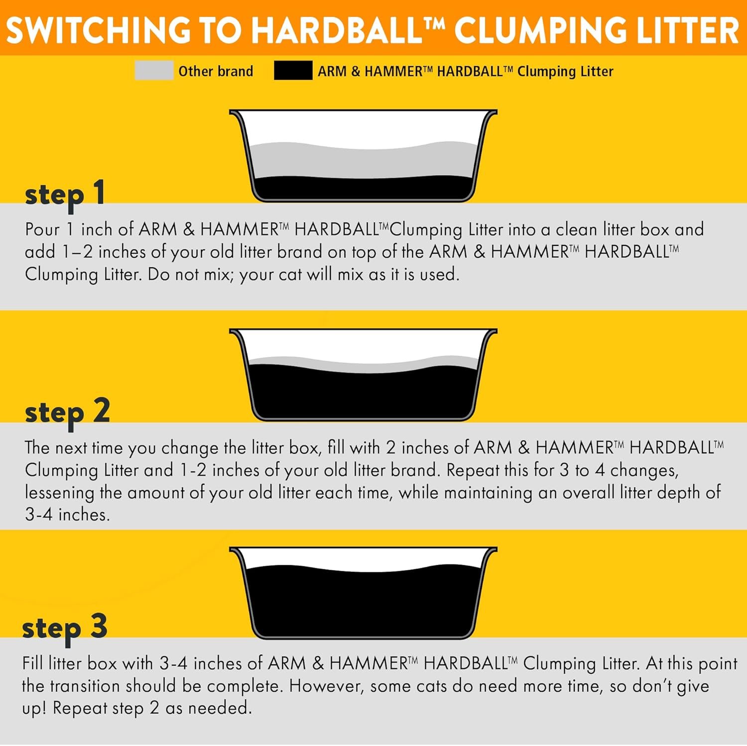 ARM & HAMMER HardBall Lightweight Cat Litter is an innovative product designed to deliver odor control while remaining lightweight. ARM & HAMMER HardBall boasts ultracompact clumps that shrink waste and odors, offering easy, low dust cat litter clumping for a fresh kitty litter box. Suitable for multi cat litter households, this ARM & HAMMER litter forms hard, tight clumps that facilitate no-mess scooping. Crafted with a delightful Garden Bloom scent, it keeps your home smelling fresh for up to 14 days. Our lightweight cat litter clumping option is over 60% lighter than regular versions, making cat litter bulk a non-issue. Transform your litter maintenance with ARM & HAMMER’s easy-to-pour formula. Designed with fast-forming clumps, this clumping cat litter odor control ensures a clean, pleasant environment.