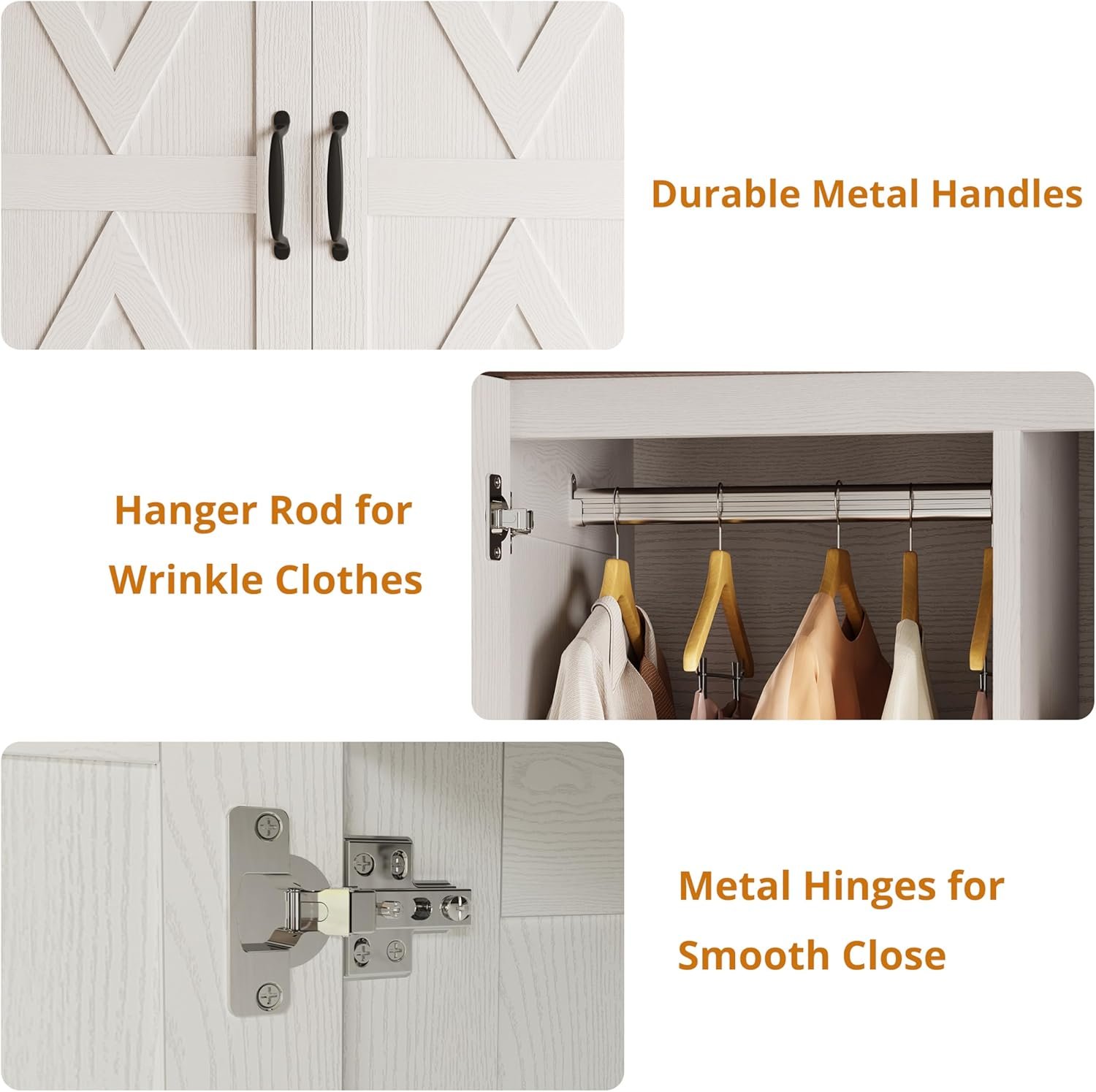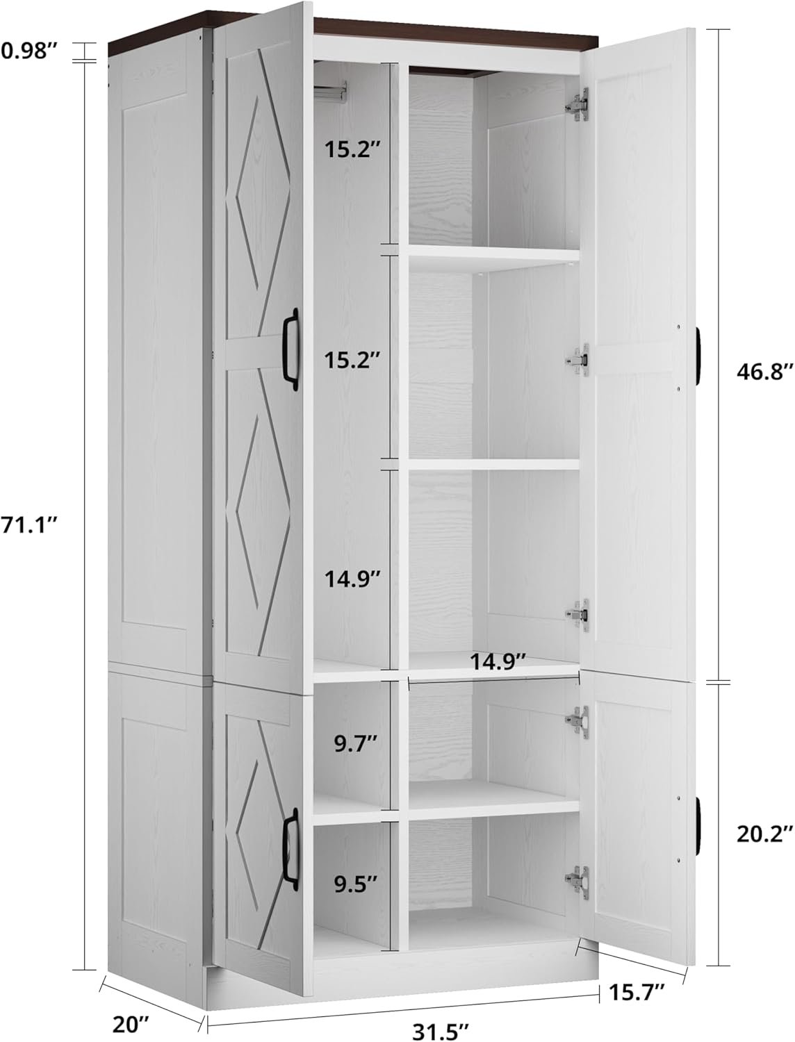 Armoire Wardrobe Closet, 72″ Tall Wood Cabinets with 4 Doors, Clothing Storage Closet Wardrobe with Adjustable Shelves, Hanging Rod, White Cabinet for Dressing Bedroom Living-Room