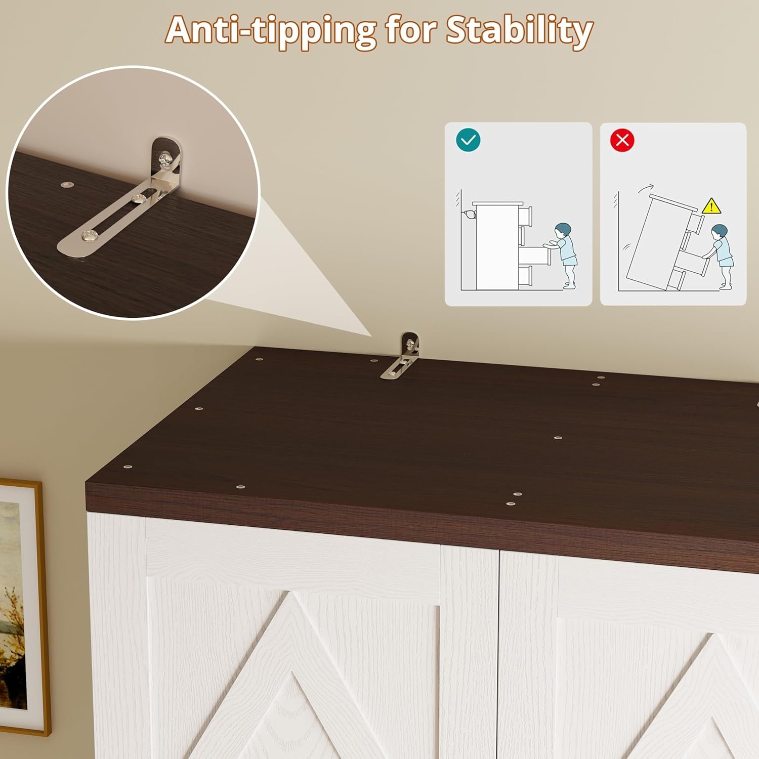 Durable and Secure: Crafted from P2 engineered wood MDF board, the tall storage cabinet is wobble-free and exceptionally durable. The hanging rod can effortlessly support up to 44 lbs. For the good of your family members, the linen closet is designed with tip-proof devices that should be securely anchored to the wall