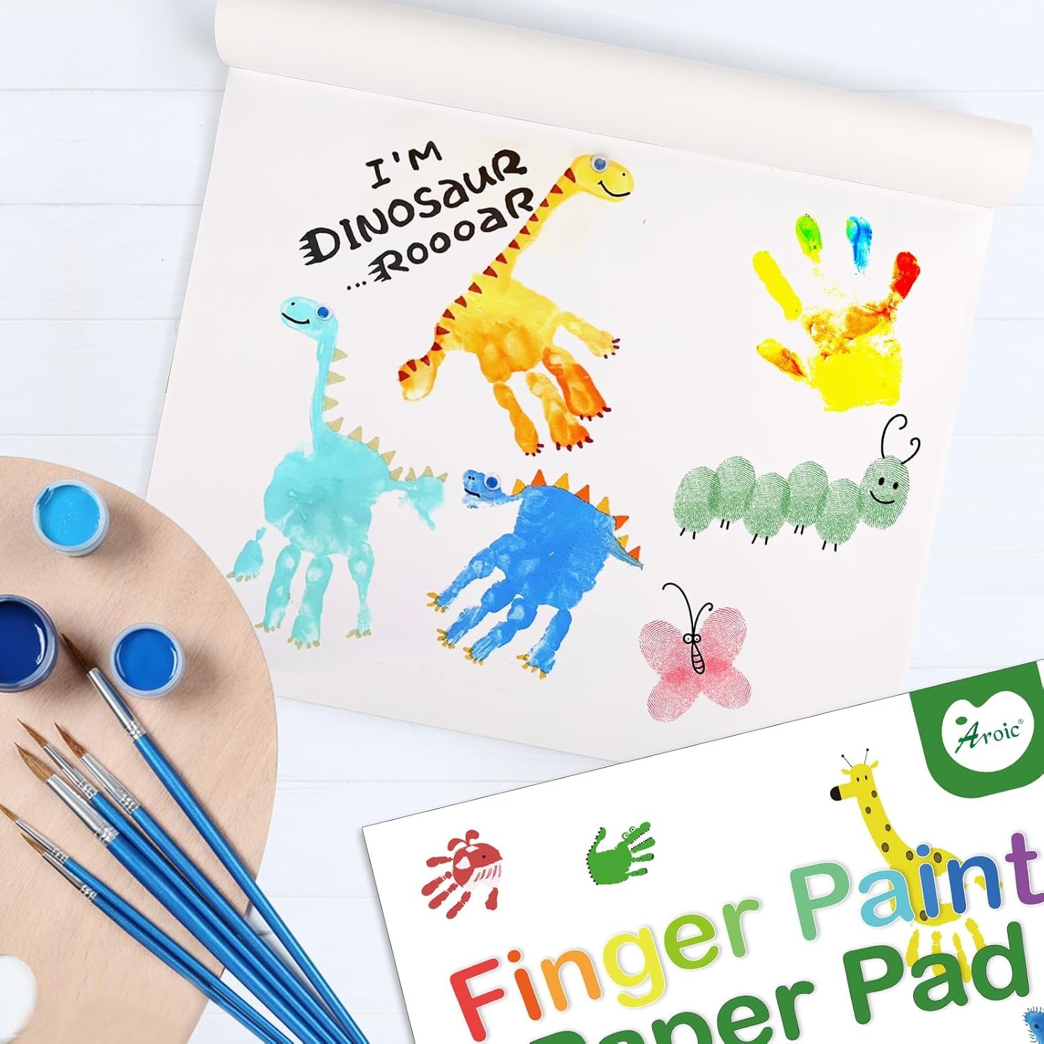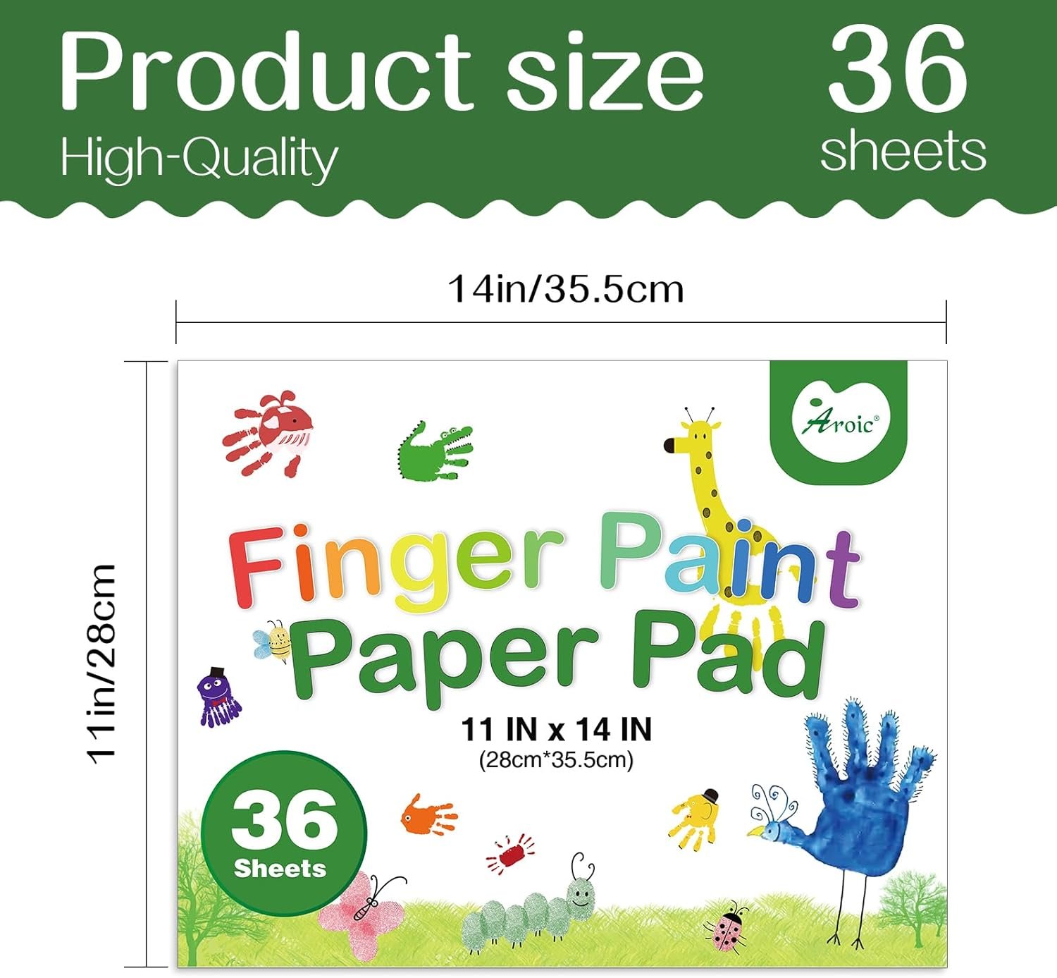 【High-Capacity】:AROIC Finger paint paper pad includes 36 sheets of premium heavy-weight white finger paint paper.Super value capacity,helps kids explore their creativity.