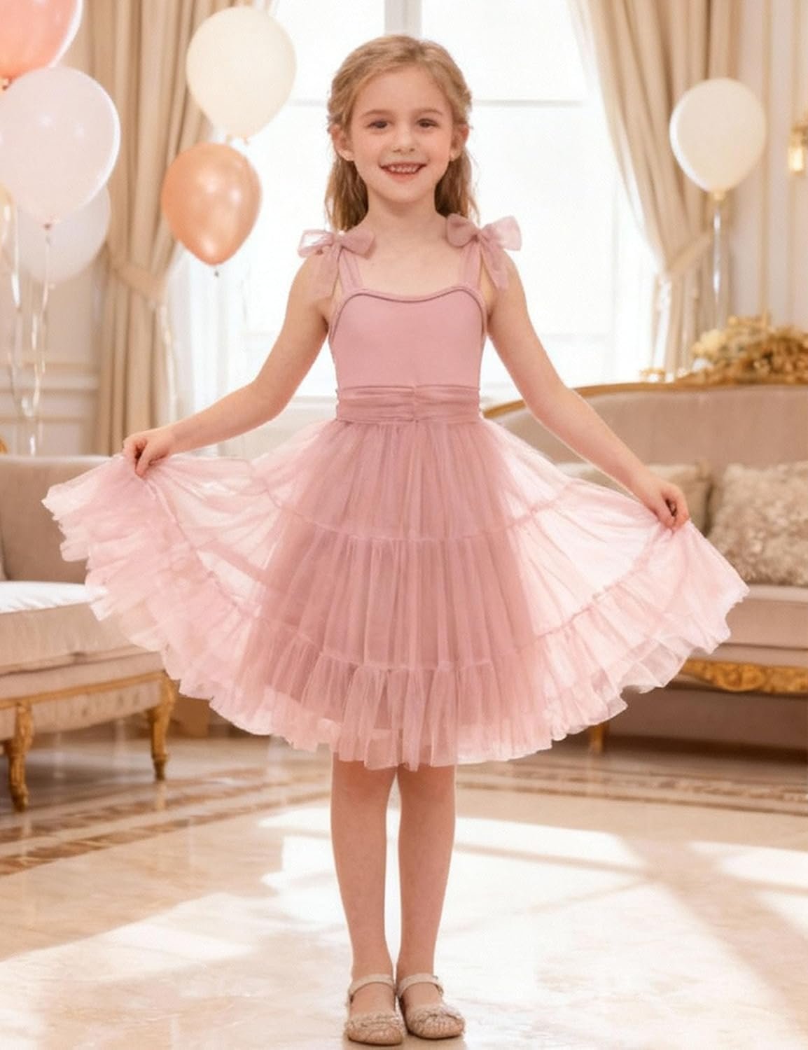 Arshiner Girls Sleeveless Bow-Tie Straps Formal Fancy Tulle Dress girls sundress summergirls sundress summer