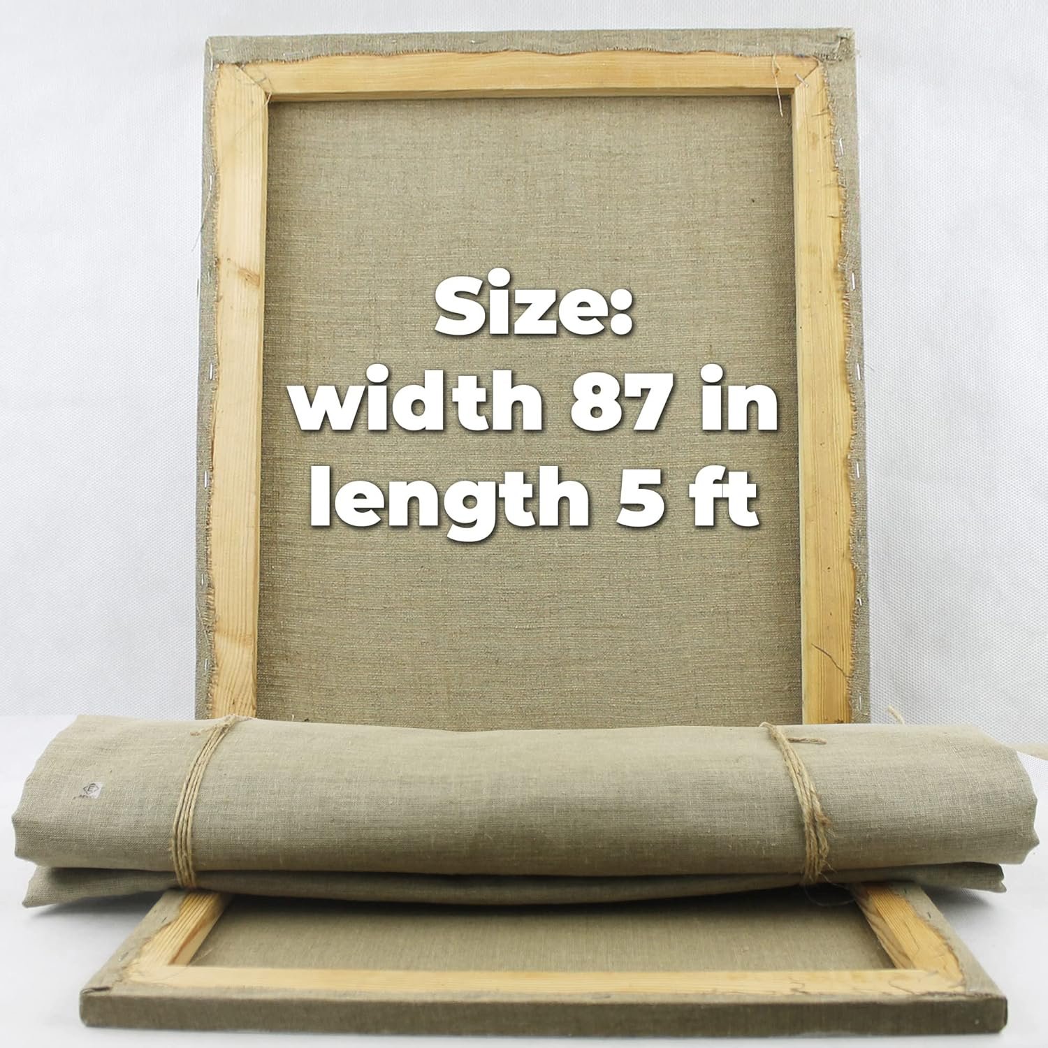 Art Natural Linen Canvas Roll 87″ Wide X 10 ft – Plain Unprimed Canvas Fabric for Painting – Raw Linen Canvas Rolled