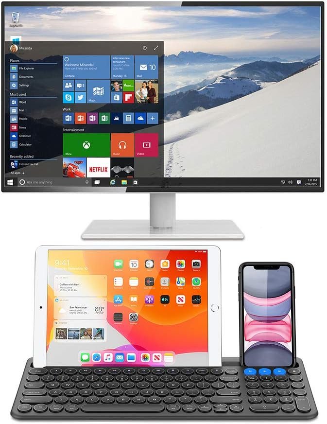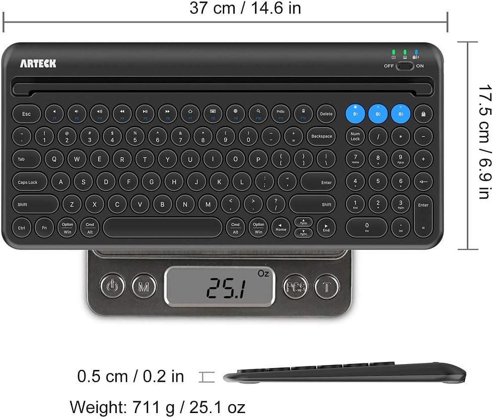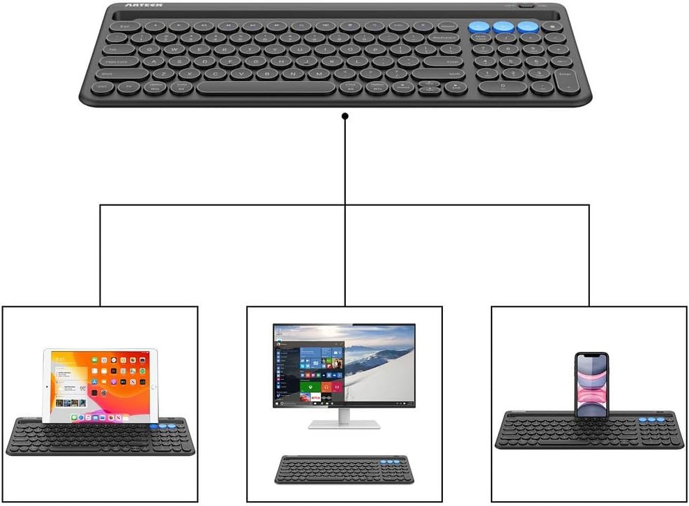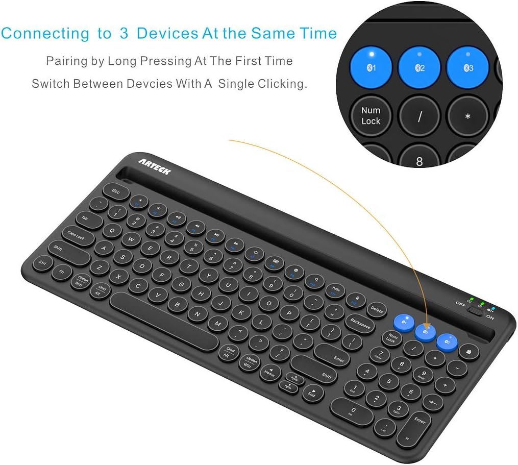 3 Devices Switch with A Single Clicking: This keyboard is able to connect to 3 devices at the same time. You can switch between 3 devices with a single key clicking.