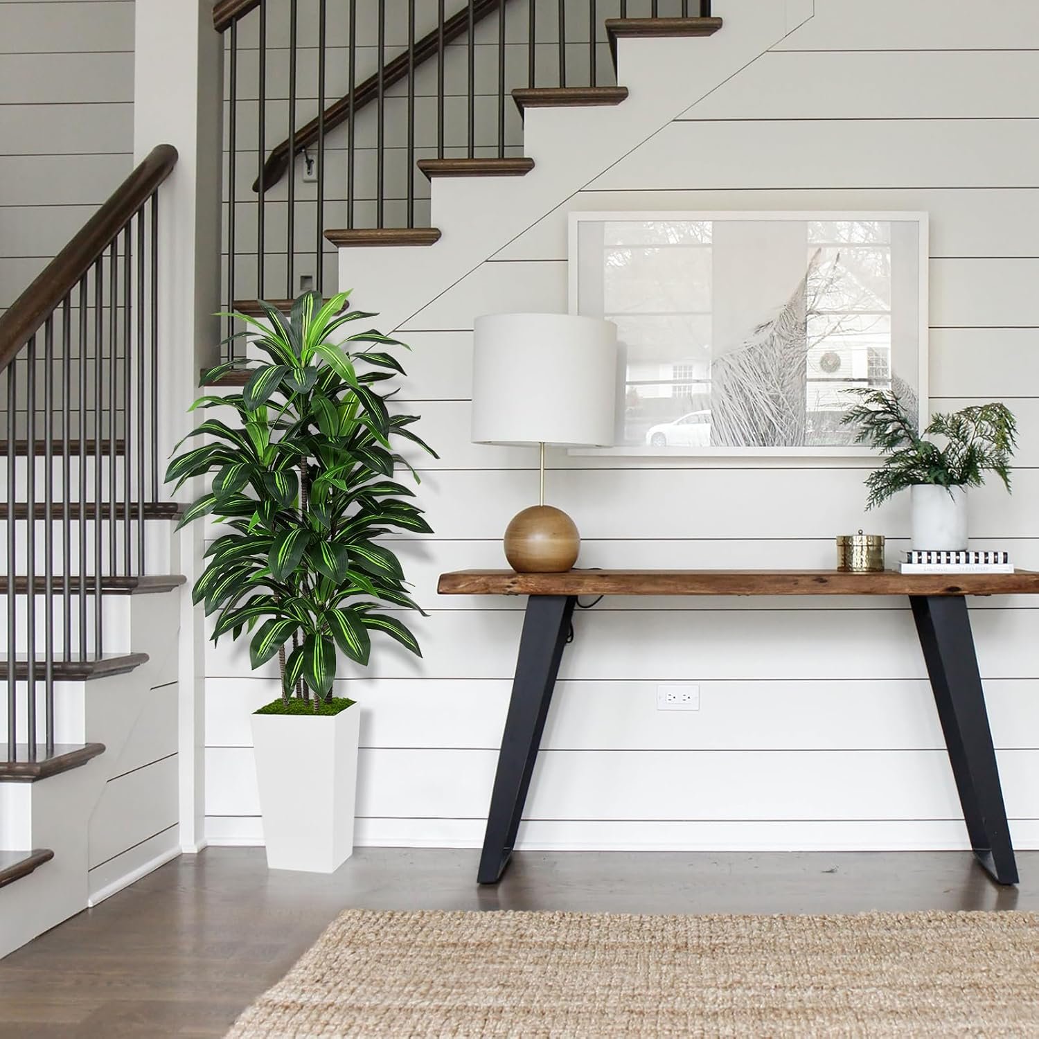 Artificial Dracaena Plant Indoor 5FT – Fake Tree with White Tall Planter – Faux Yucca Tall Fake Floor Plant in Pot – Artificial Trees for Home Office Living Room Decor Indoor