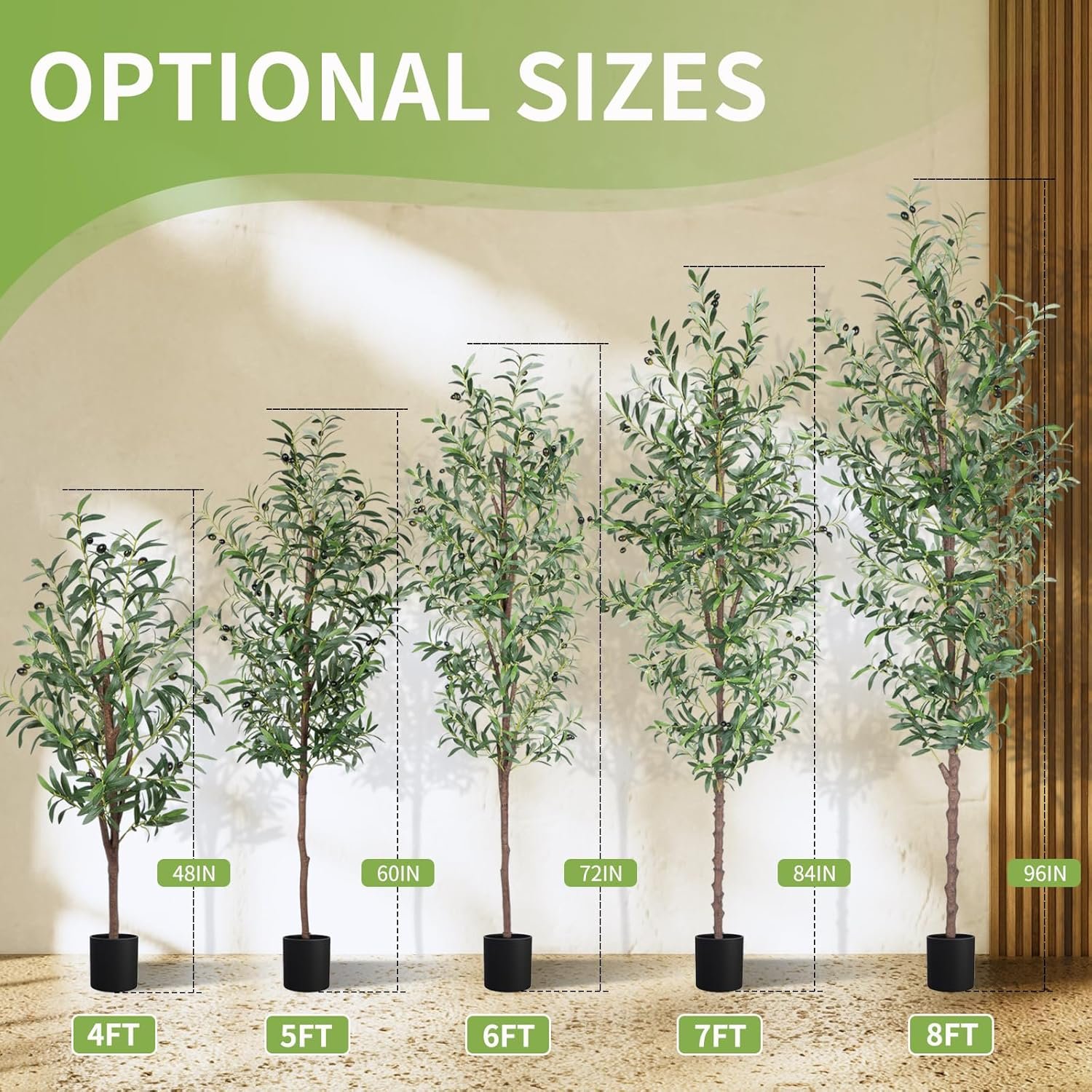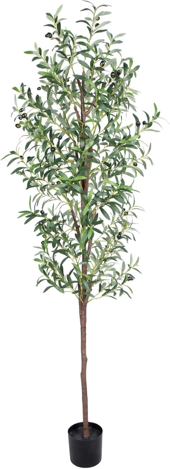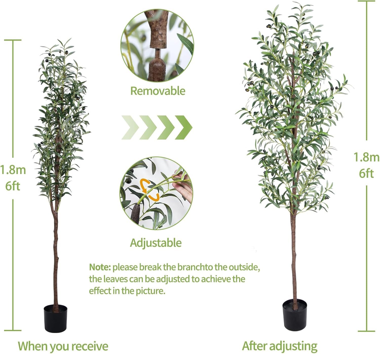 【Realistic Faux Tropical Plants】This 6Ft tall faux olive tree features 648 Leaves and 24 Fruits crafted from silk fabric with delicate veins. The irregular trunks add to the authentic look, making this tree incredibly realistic.