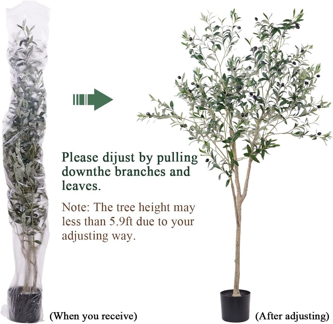 SIMULATED SIZE & GOOD MATERIAL – 6FT(1.8m)after assembly, you can adjust the height according to your preference and place. Green realistic craftsmanship adds green life to the room. The size of the faux olive tree is designed with reasonable home aesthetics, and the latest technology and high-quality polyester materials are used to ensure safety.
