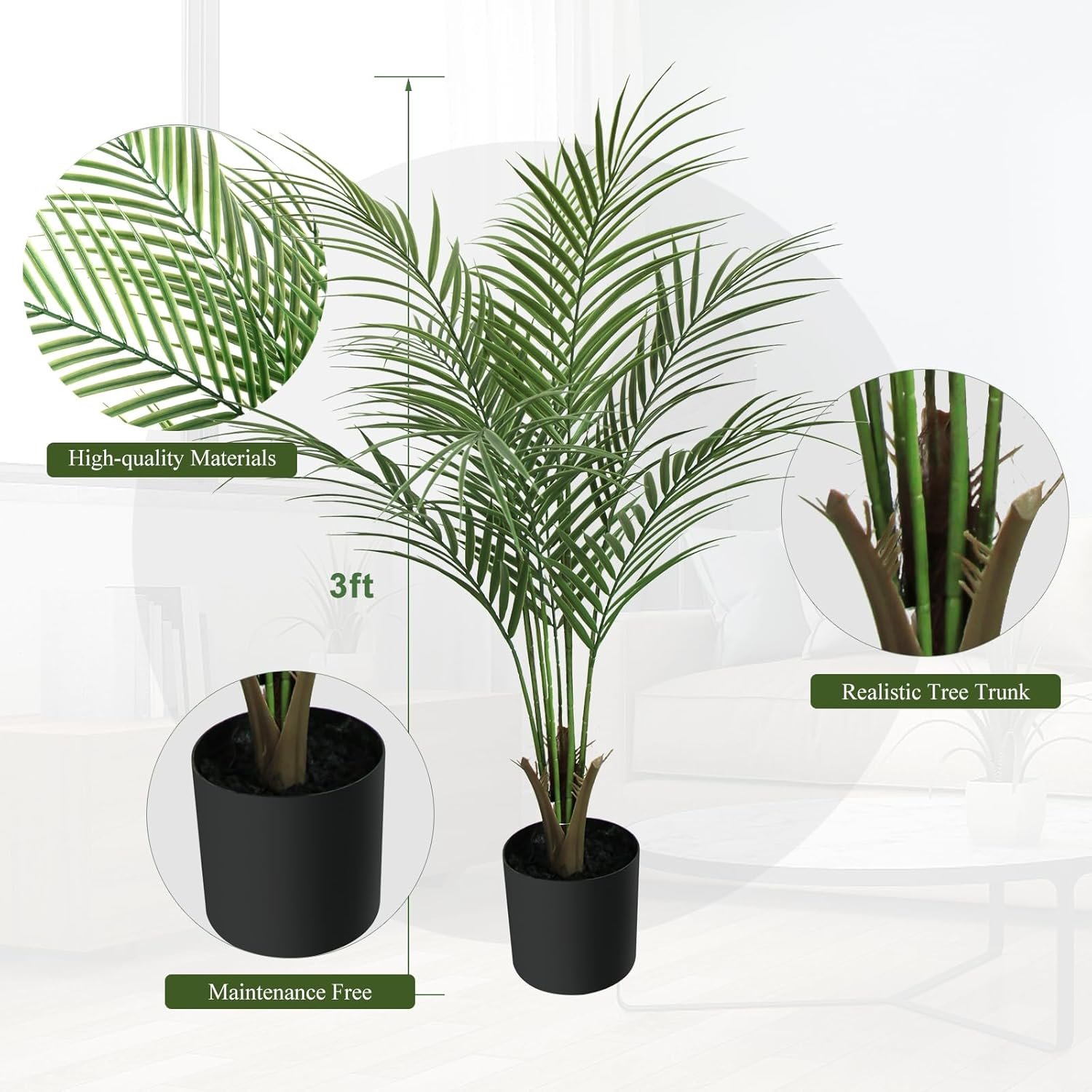 Artificial Palm Plant 3FT Fake Palm Tree with 9 Trunks Perfect 36inch Faux Tropical Palm Plants in Pot for Indoor Outdoor House Home Office Garden Modern Decor Housewarming Gift (1Pack)