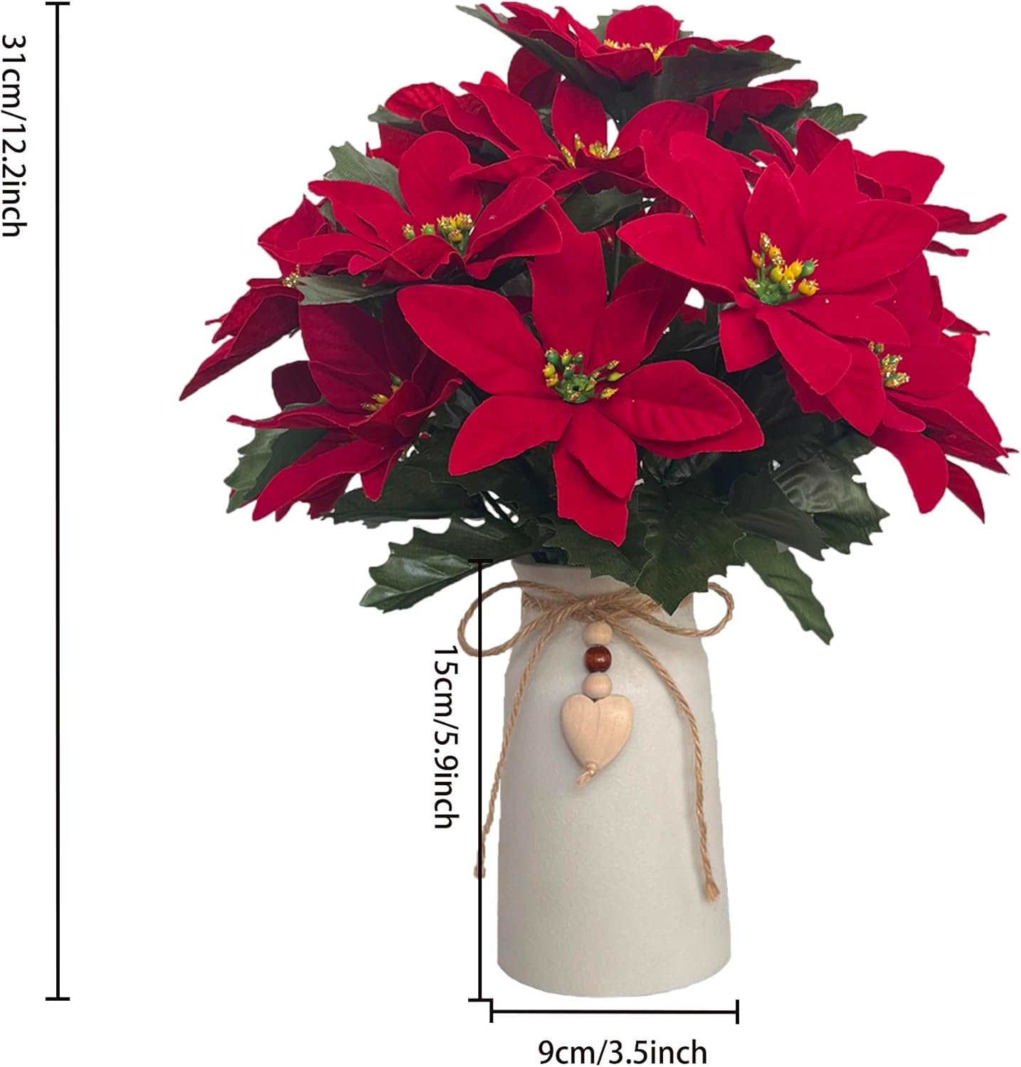 Premium Quality Materials – Crafted with attention to detail, the lifelike poinsettias and greenery are made from durable silk materials, the vase is made from premium ceramic, ensuring the arrangement stays beautiful and intact for seasons to come.
