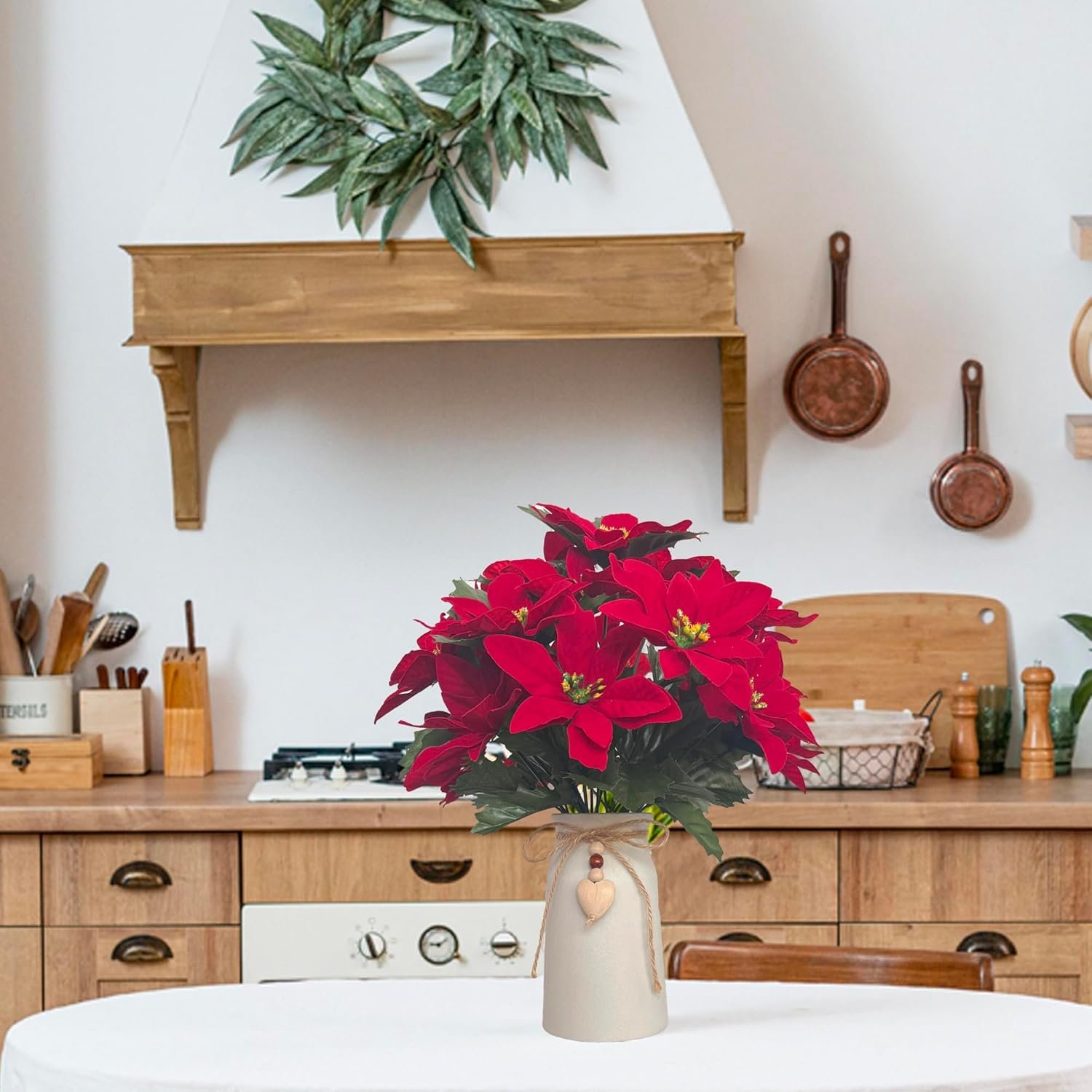 Long-lasting and Low Maintenance – Enjoy the beauty of fresh-looking flowers without the hassle. This artificial poinsettia arrangement requires no watering or sunlight, maintaining its vibrant appearance throughout the holiday season and beyond.