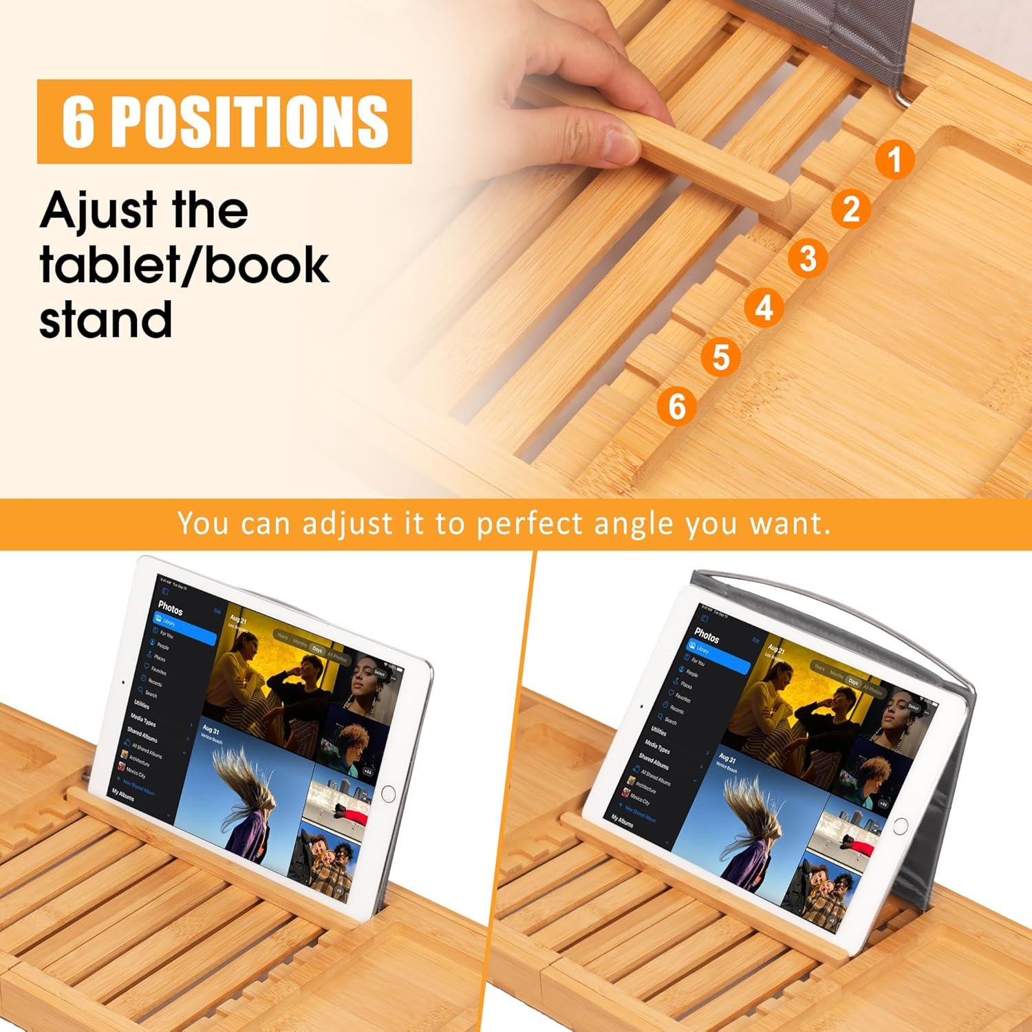 🛀🏼MULTIFUNCTIONAL COMPONENT – It features 6 reading angles for ideal viewing experience of your book or Ipad,the wine glass holder,cup holder, phone slot and two side-trays are designed for your bath time. AWESOME GIFT CHOICE for wedding birthday christmas etc.