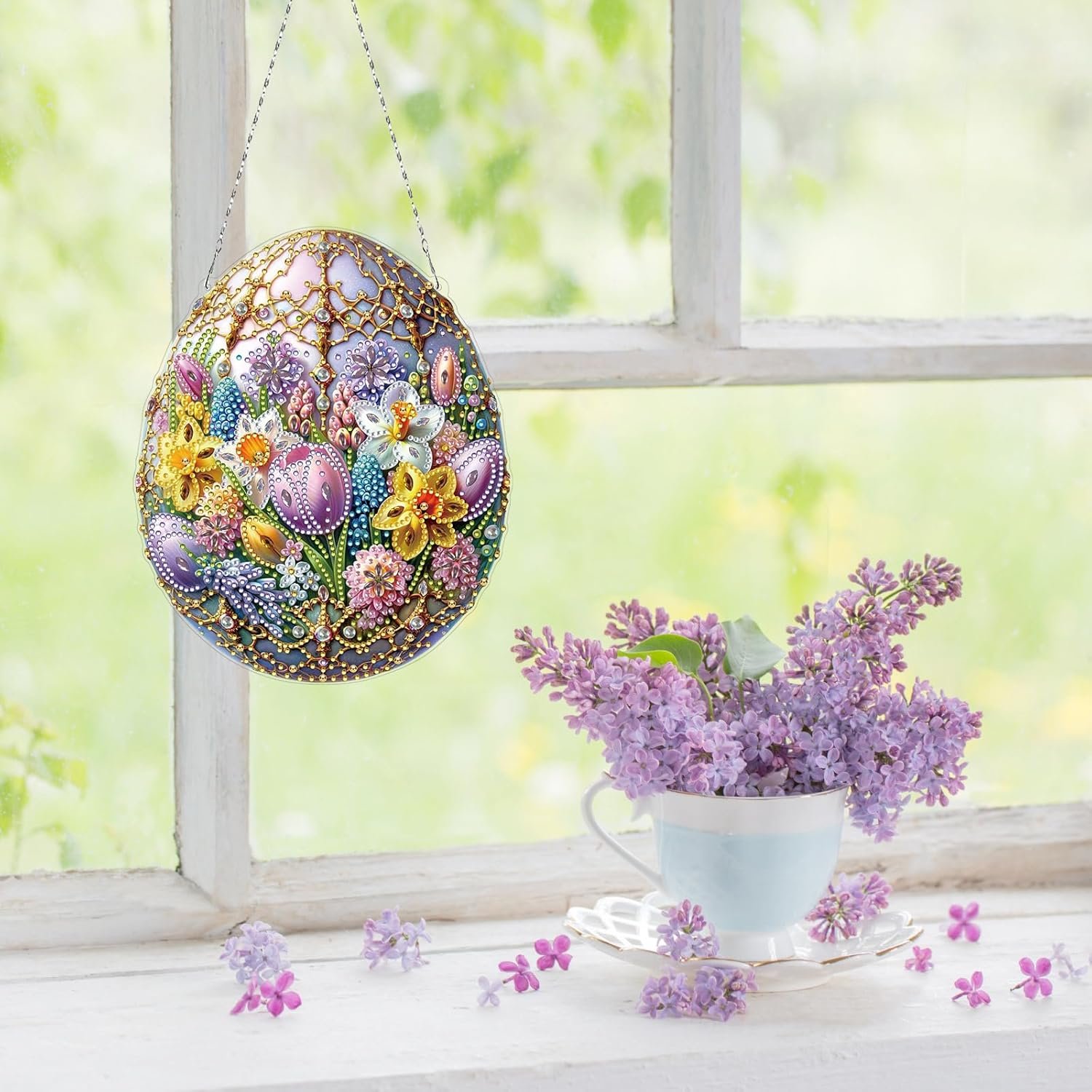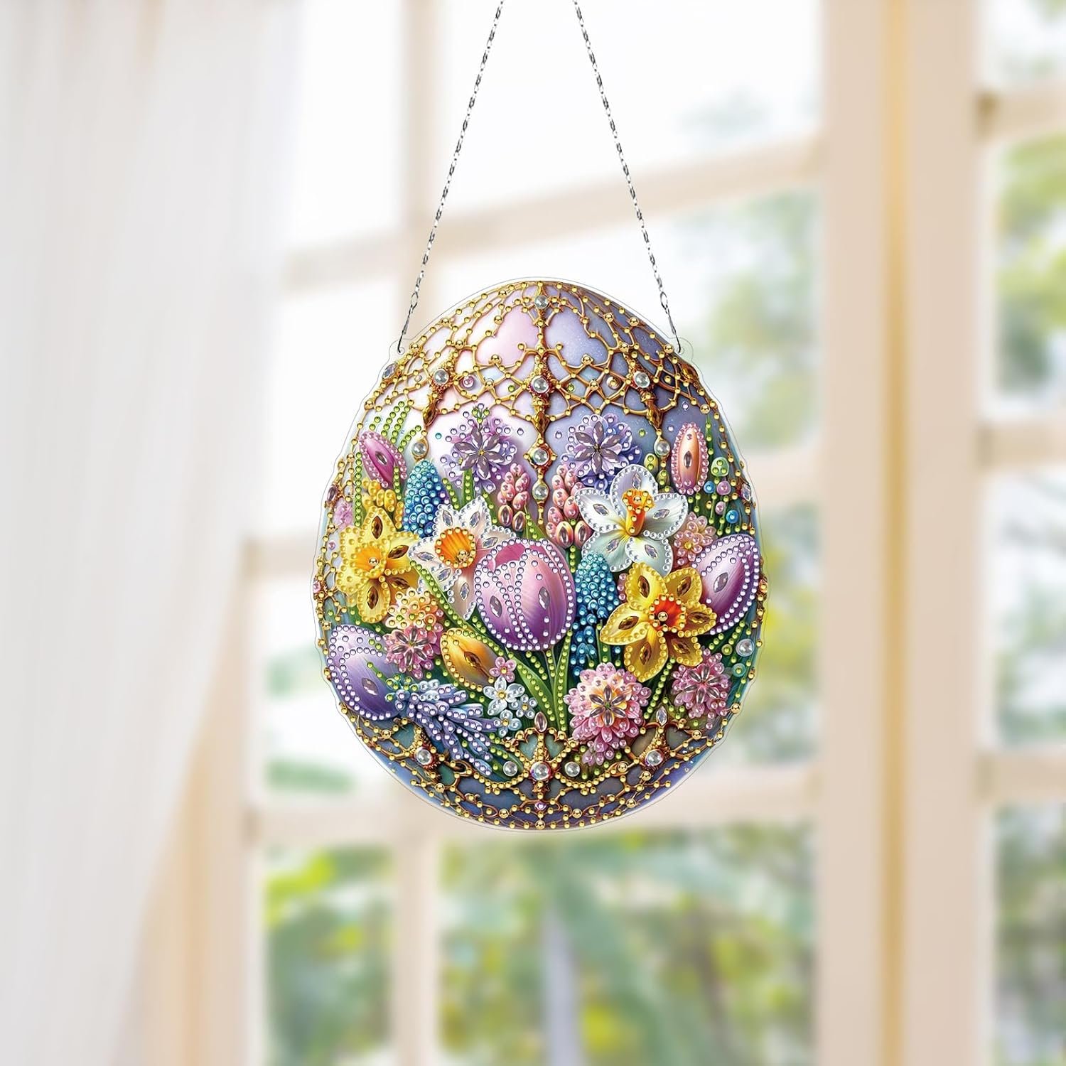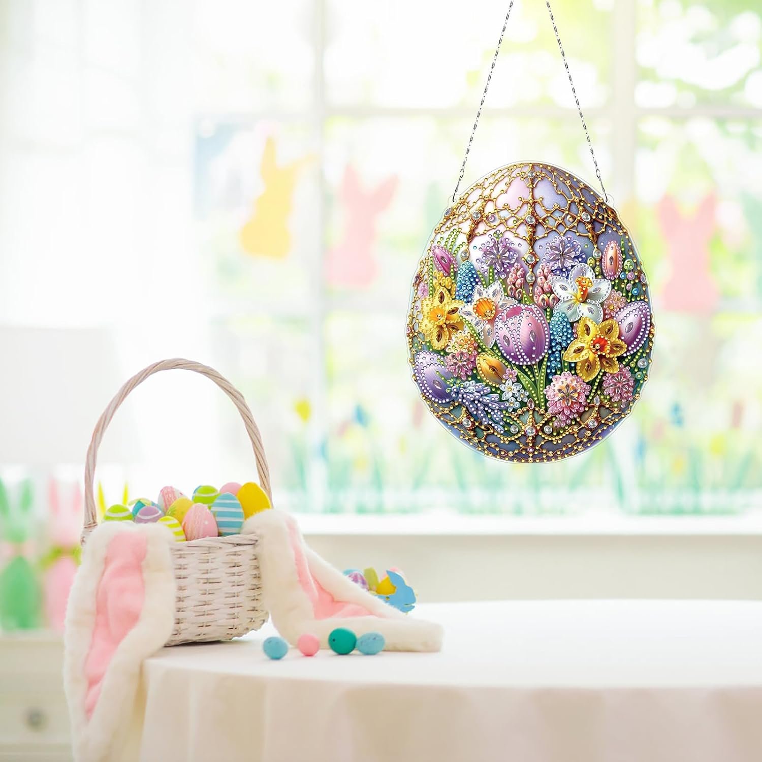 ARTopet DIY Diamond Art Painting Pendant Ornament Easter Flower Egg Design Hanging Double Sided Pattern Single Sided Dot Drill for Home Garden Wall Door Decor-Easter Egg