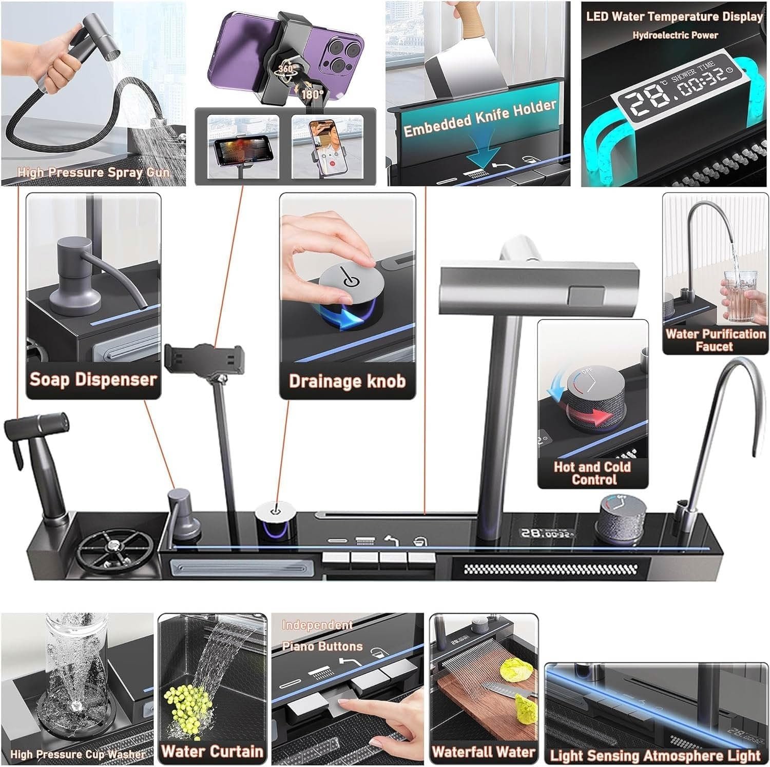 Perfect for Modern Homes: Whether you’re upgrading your kitchen or designing a new space, this modern kitchen sink with waterfall and cup washer features is an essential element for a functional and elegant kitchen.