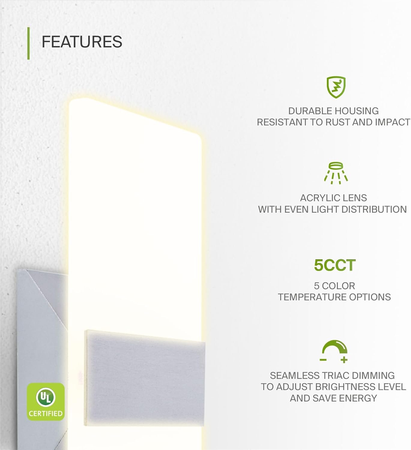 MODERN DESIGN: ASD Indoor LED Wall Sconce combines stylish multipurpose design with efficient lighting. Durable housing resistant to rust and impact allows many years of service. Acrylic lens with 215° beam angle provides perfectly even light distribution.
