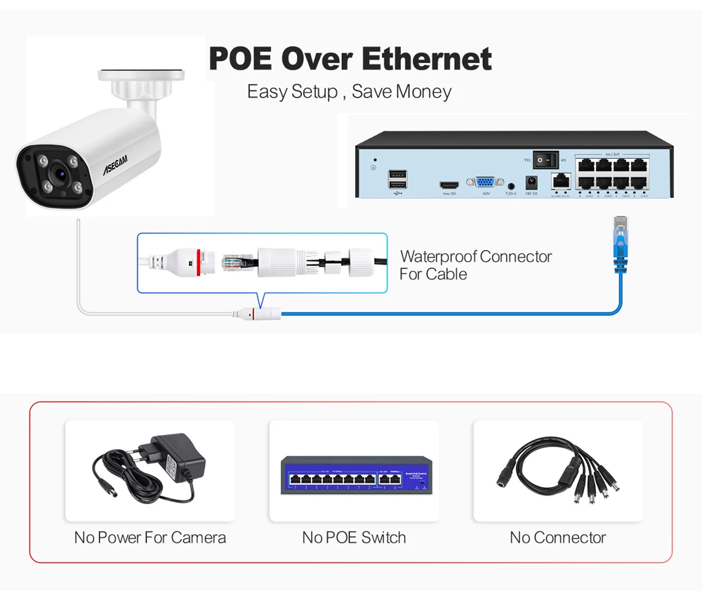 POE Connection, Don’t need Power Supply,No POE need USE 12v Power