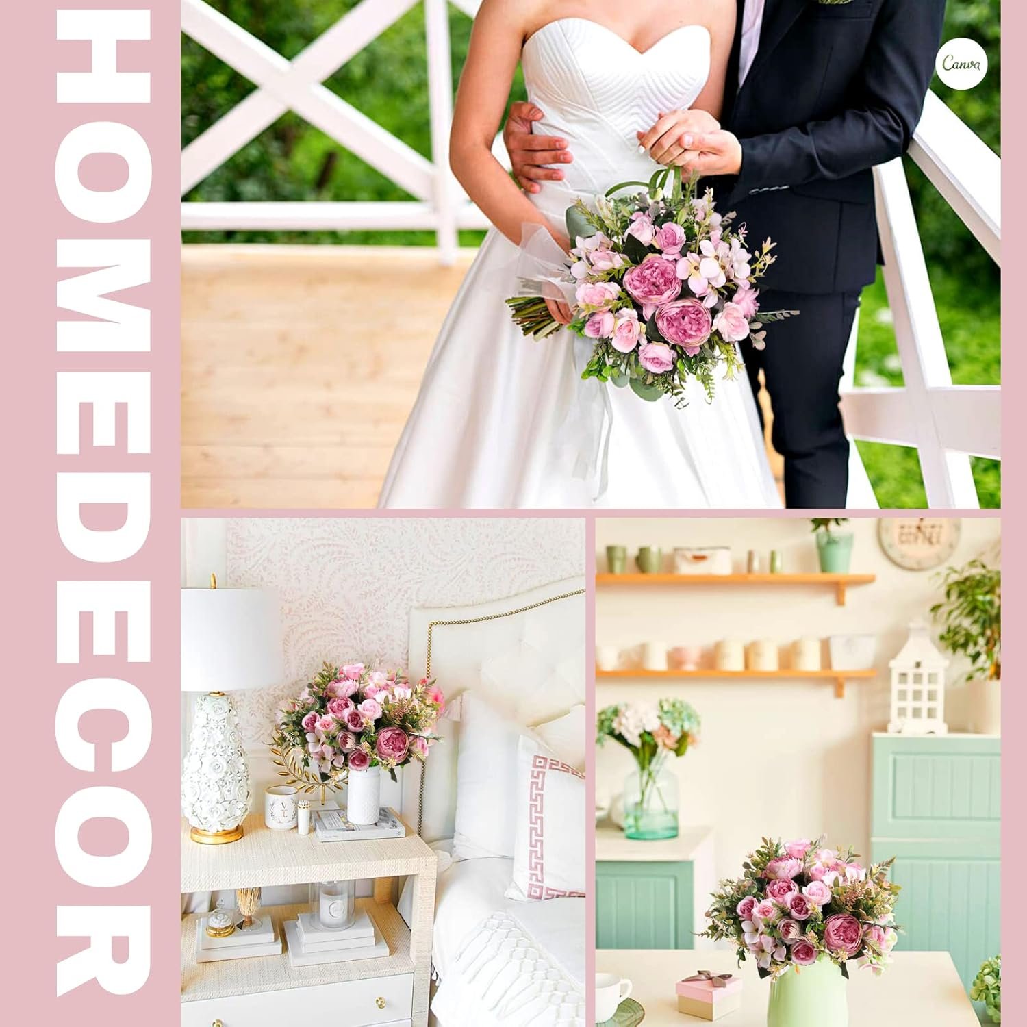 ASTRYAS Artificial Flowers, Pink Artificial Peony Small Silk Flowers Fake Peonies Bouquet Rose Flower Arrangement Table Centerpiece for Dining Party Home Decoration(Pink)