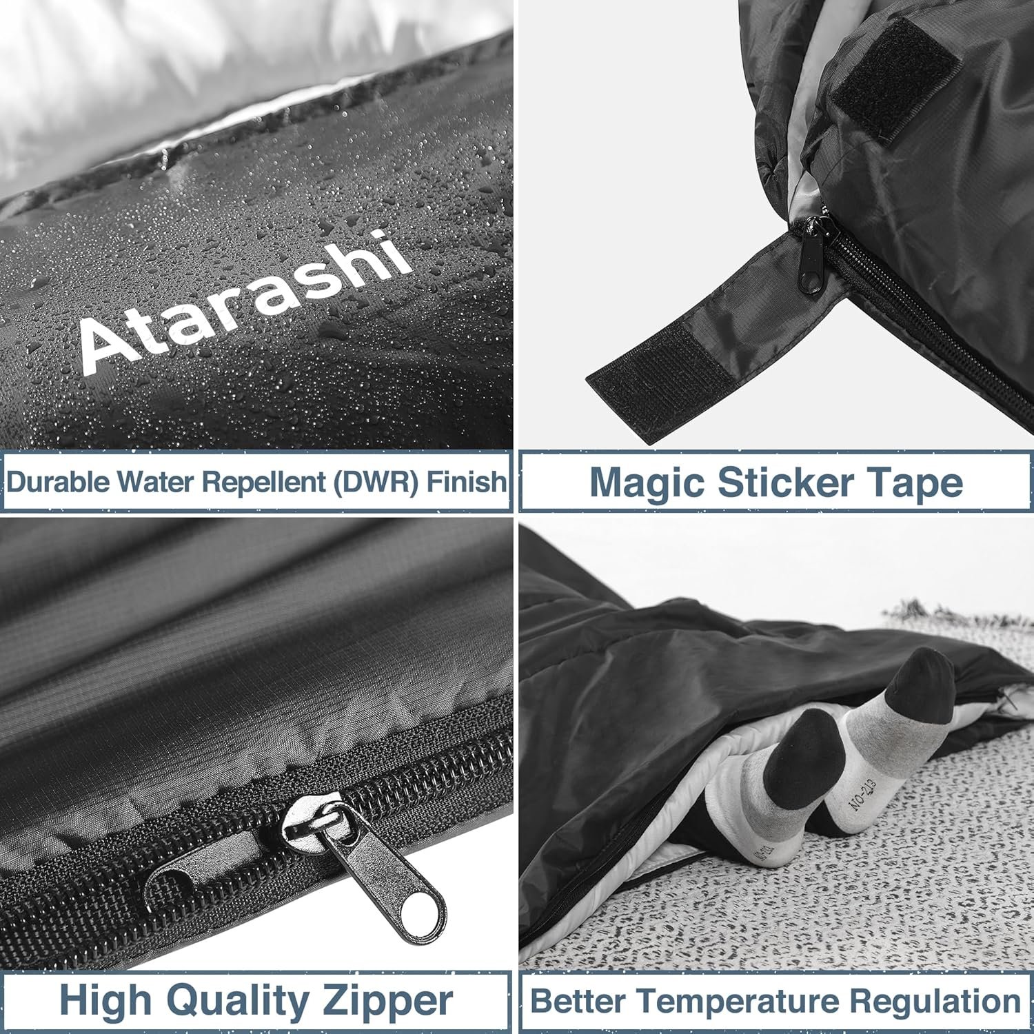 Atarashi Camping Sleeping Bag- 4 Seasons for Adults, Light, Warm, Extra-Large with Compression Sack- Great for Hiking, Backpacking & Outdoor Adventures