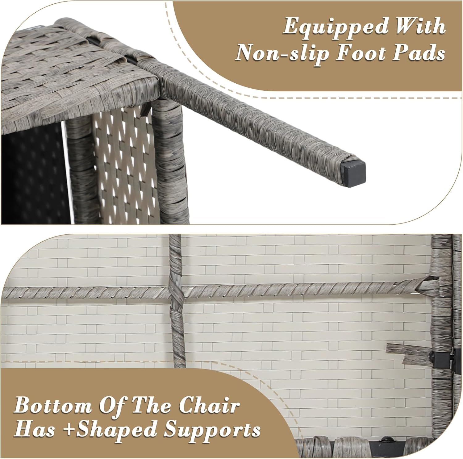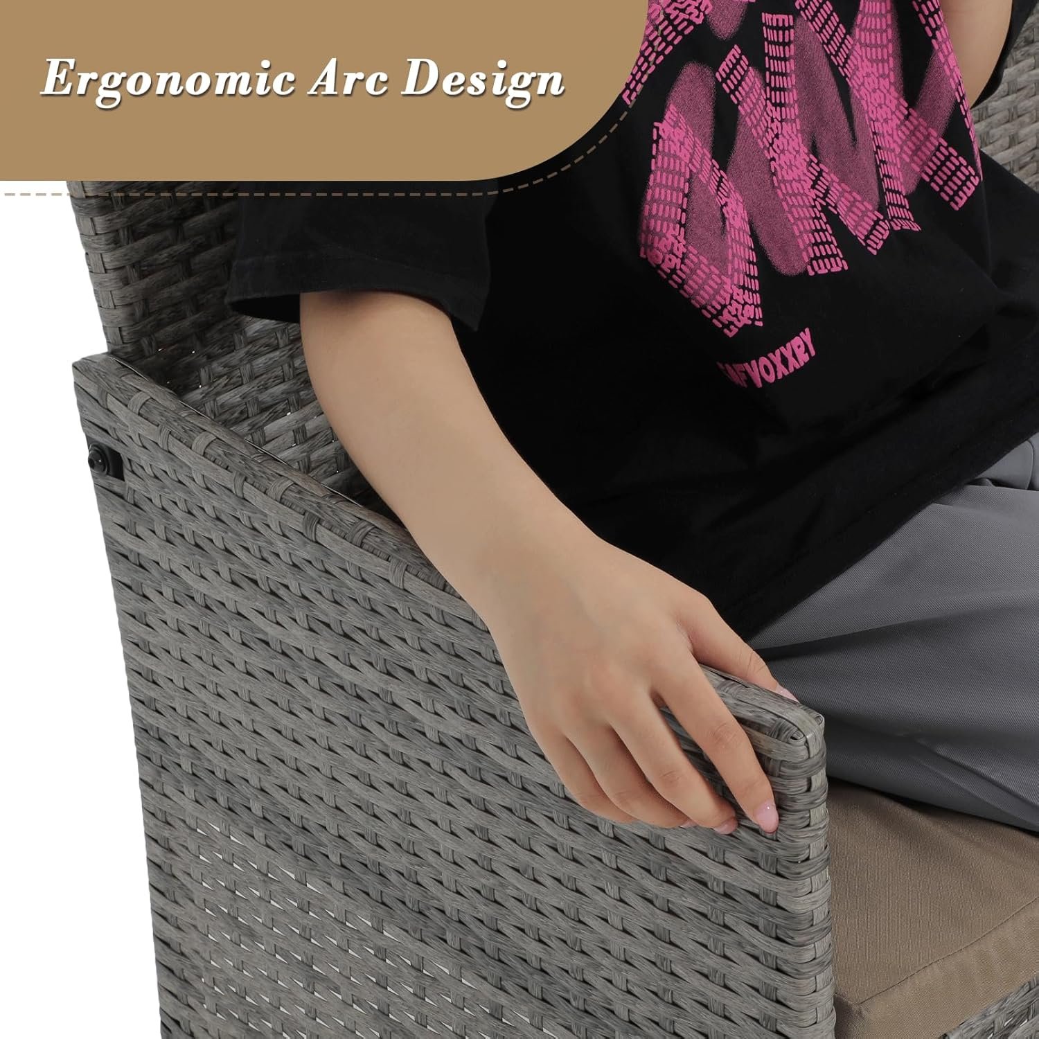 ERGONOMIC DESIGN: This patio conversation set features a gently curved backrest that fits your back perfectly for ultimate comfort. The armrests offer great support, making it even more relaxing. Plus, with non-slip feet, the furniture won’t scratch your floors and moves quietly.
