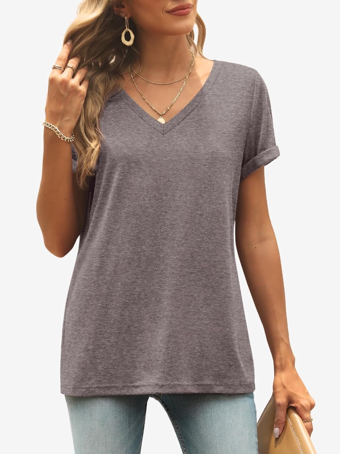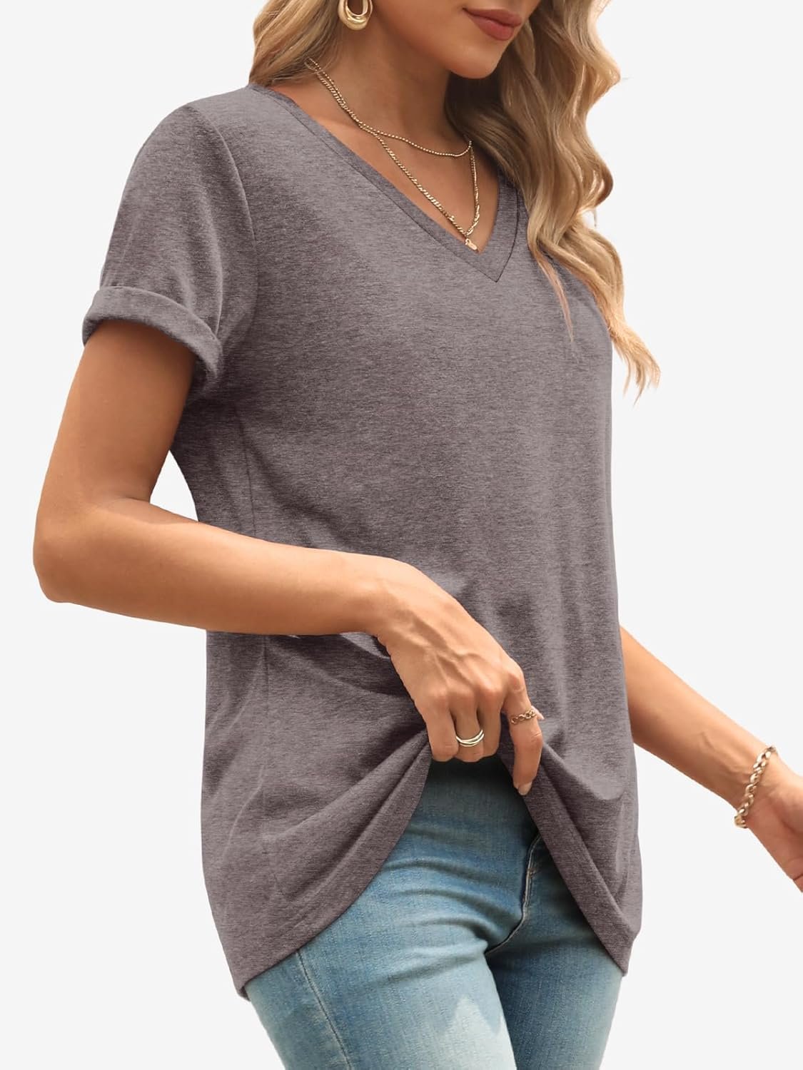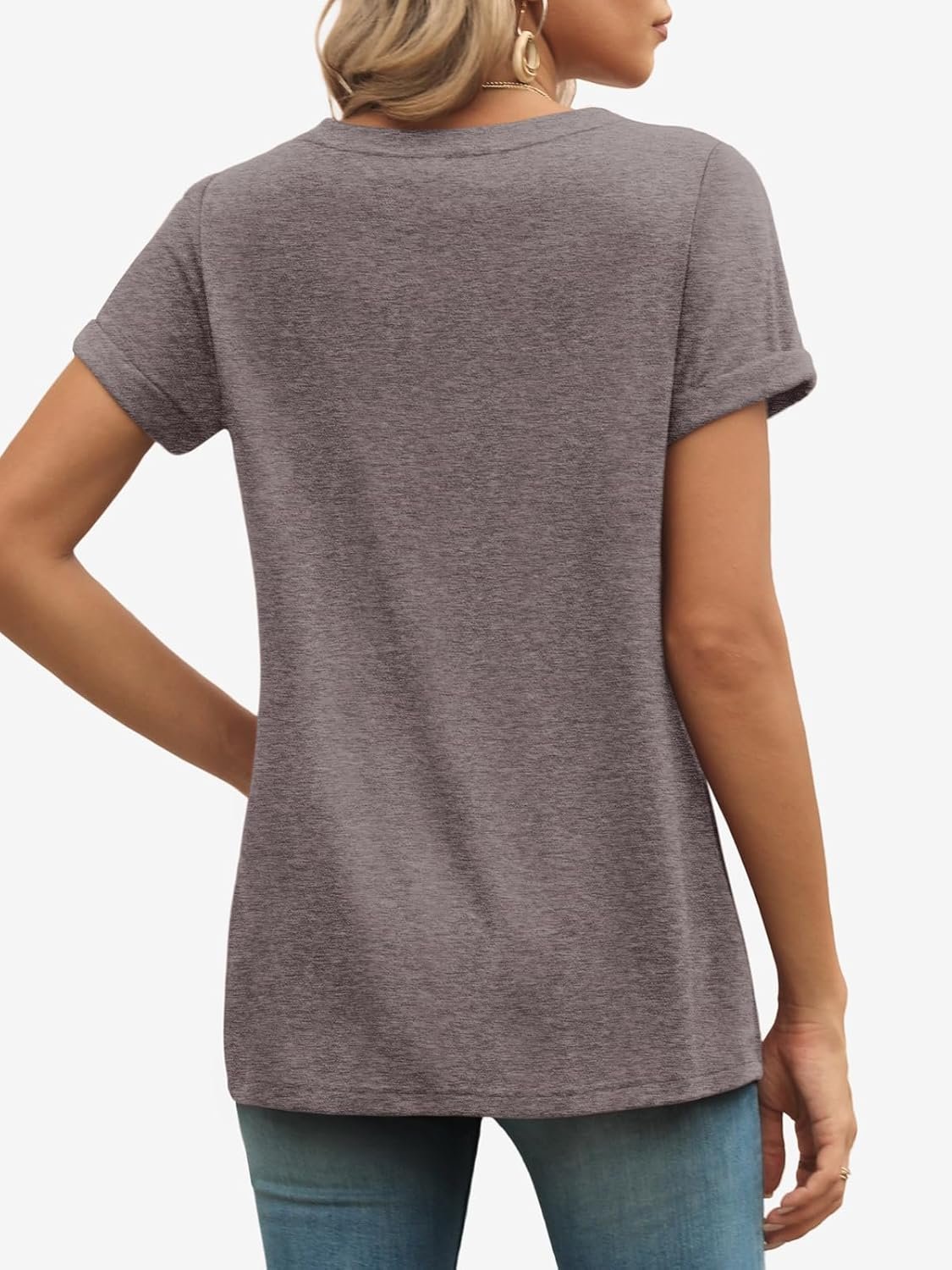 ATHMILE Womens Tops V Neck Short Sleeve T Shirts Summer Fashion 2025