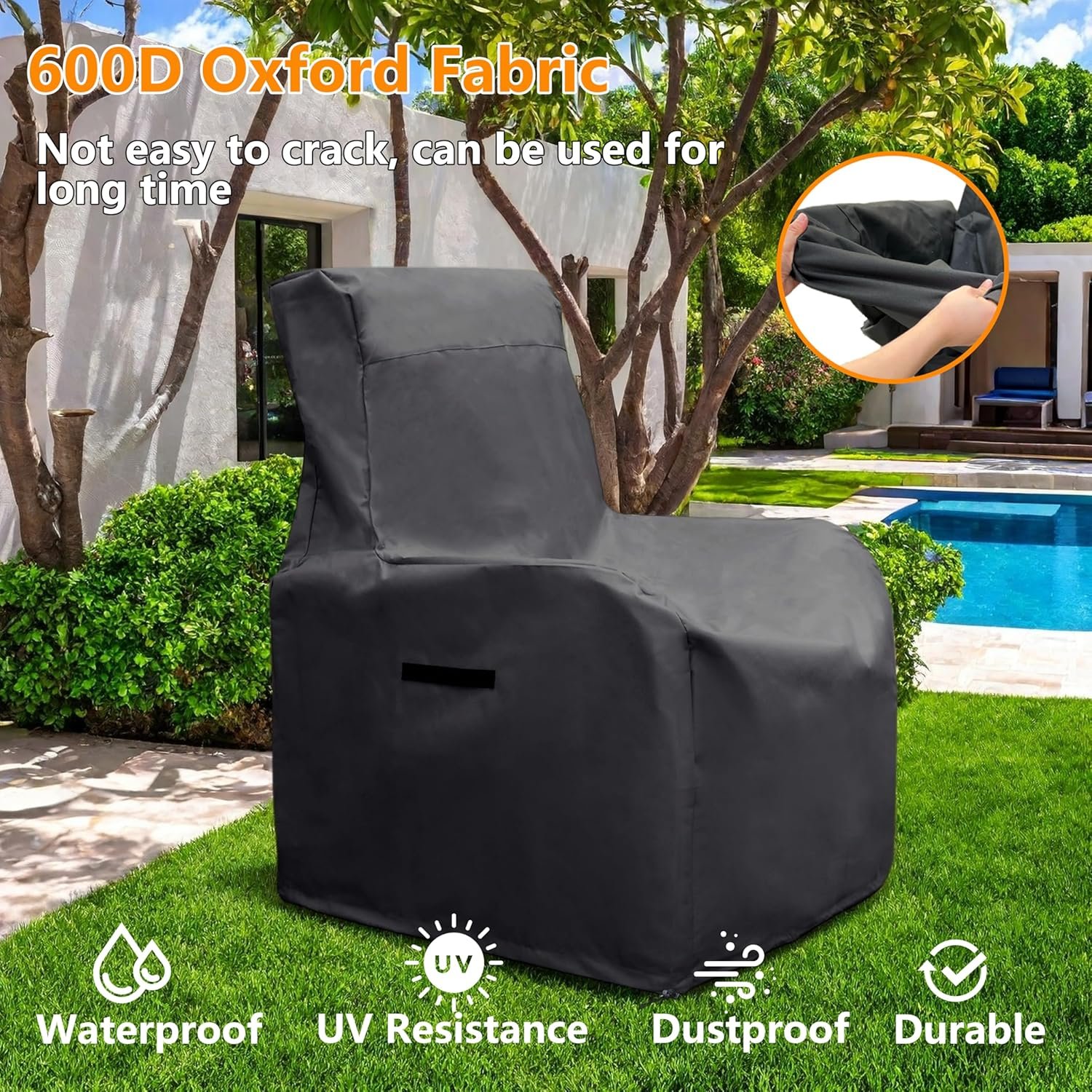 Quality Material: Our outdoor chair cover is made of high quality 600D oxford fabric to ensure durability. The sturdy fabric is not only waterproof, but also UV resistant, effectively protecting your chairs from the outdoor environment