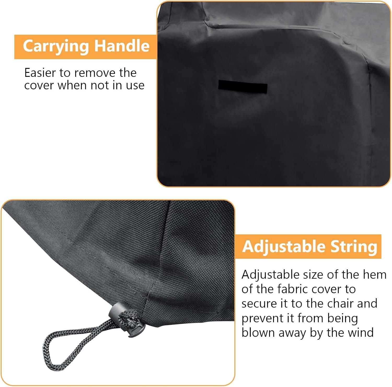 Adjustable Design: Our outdoor furniture cover features an adjustable drawstring that fits perfectly on most single chairs. Simply tighten the drawstring and the cover stays firmly in place on the chair, preventing it from being blown away by strong winds