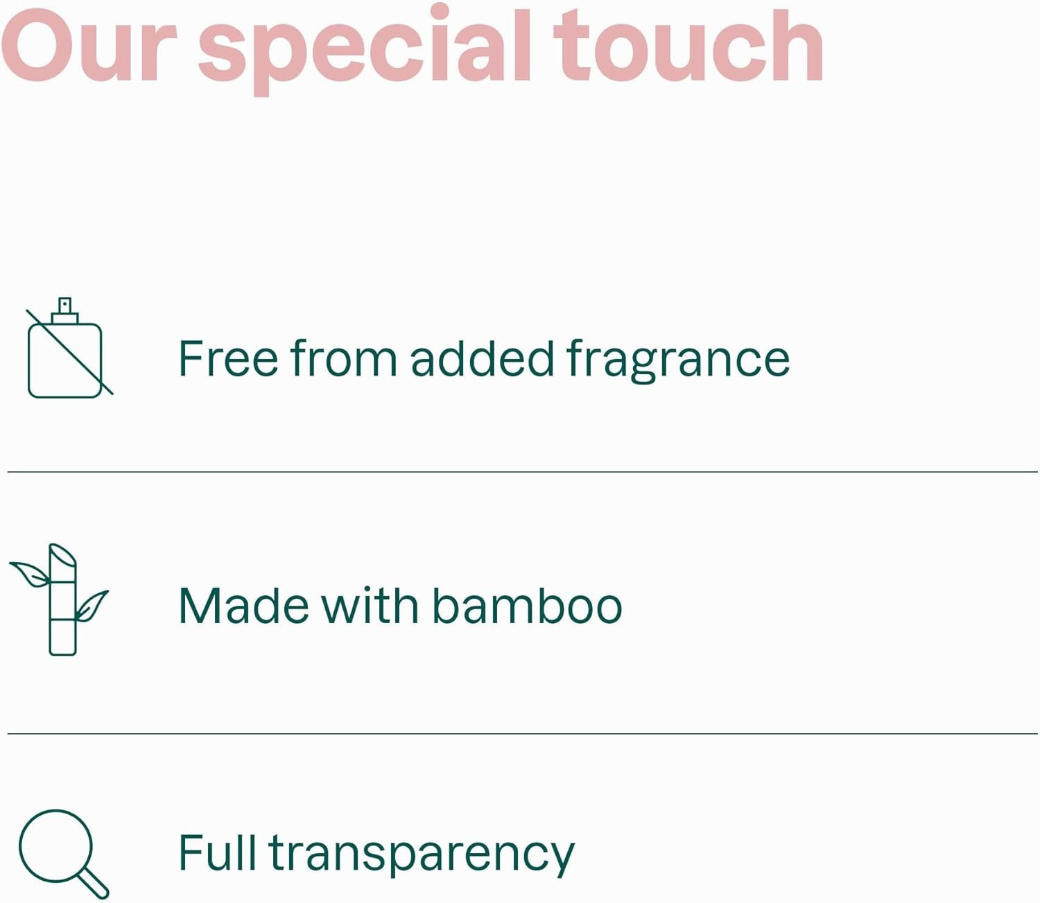 ECO-CONSCIOUS: absorbent wood pulp extracted from FSC-certified bamboo and recyclable packaging