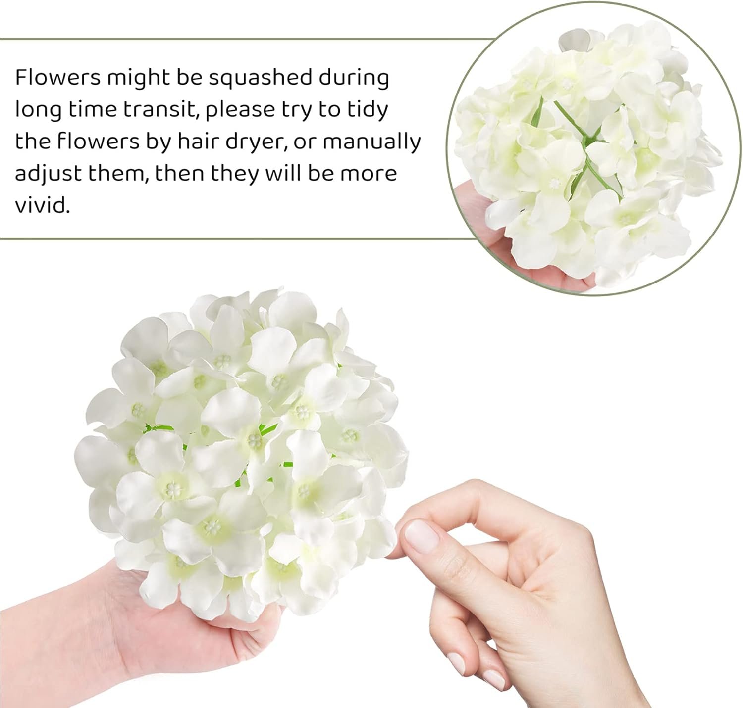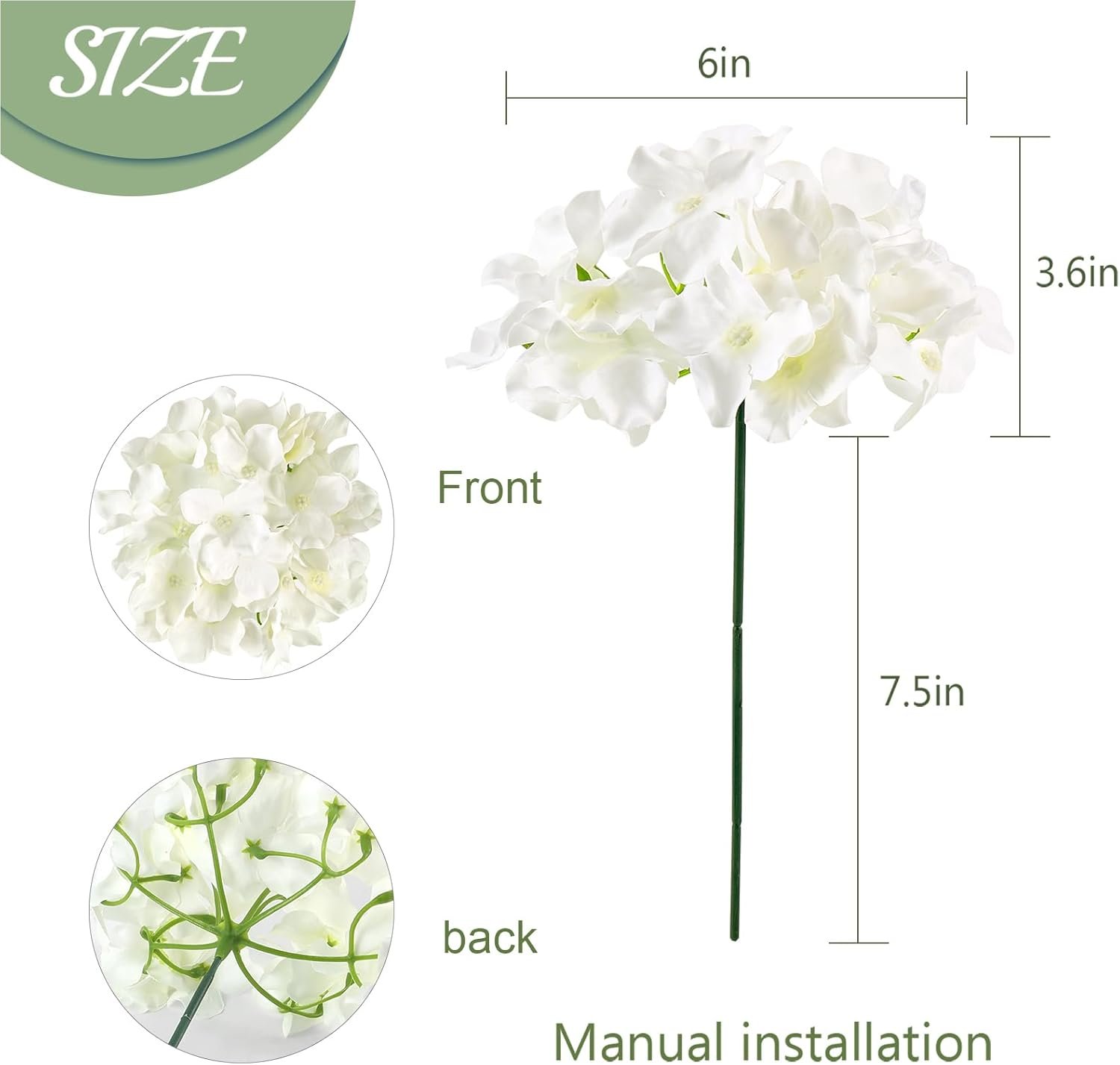 Flower Size: Hydrangea head diameter is about 6 inches, height is about 3.6 inches; Independent stem length is about 7.5 inches. The suitable size can meet your different purposes and suit match any decor style or occasion and you can easily arrange them in vases, bouquets, or floral arrangements