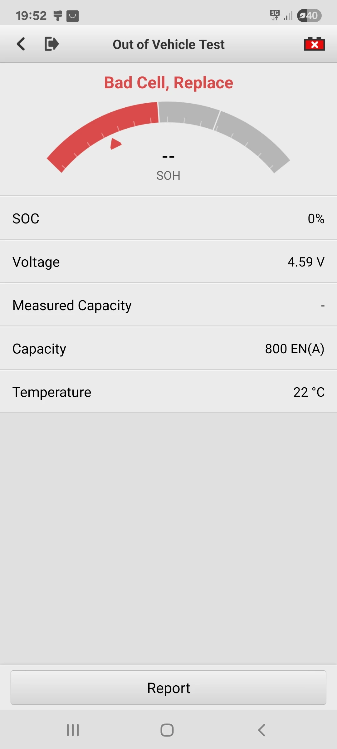 After battery test is completed, SOH (state of health), SOC (state of charge), voltage, current, rating, and specific guidance and suggestions can be visually displayed, and the batteries can be clearly divided into: Good Battery; Good & Recharge; Charge & Retest; Bad Cell; Replace Battery.