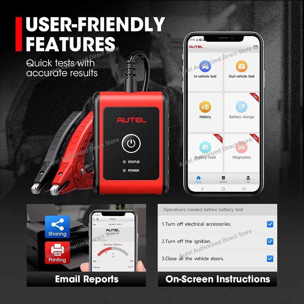 New to the battery tester? No worries at all! Autel BT506 provides detailed and step to step instructions, just follow the on-screen indicators, you can finish battery diagnosis easily.