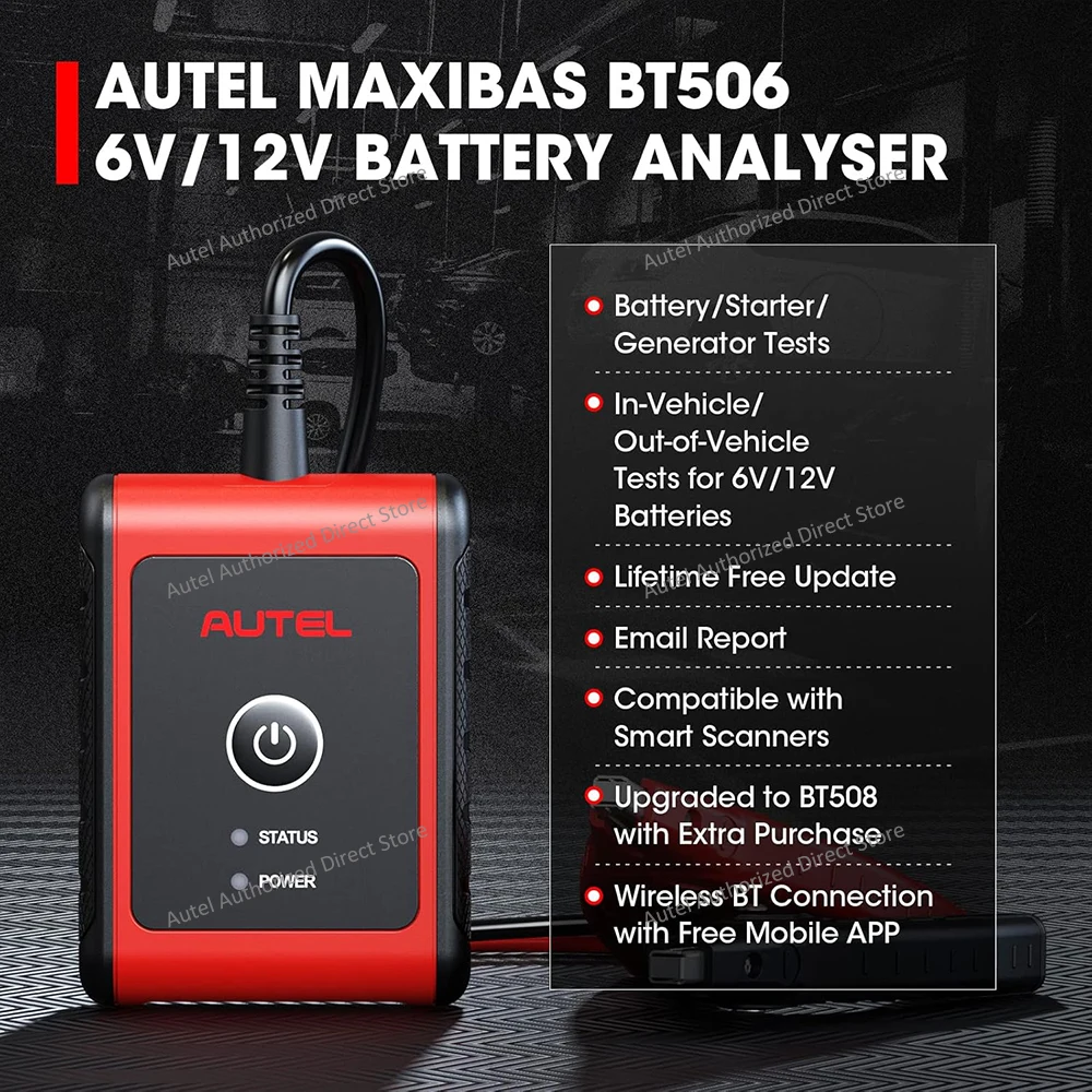 Different between traditional battery test, Autek MaxiBAS BT506 supports connect with Autel scanner and PC,which work together to perform complete battery test functions.