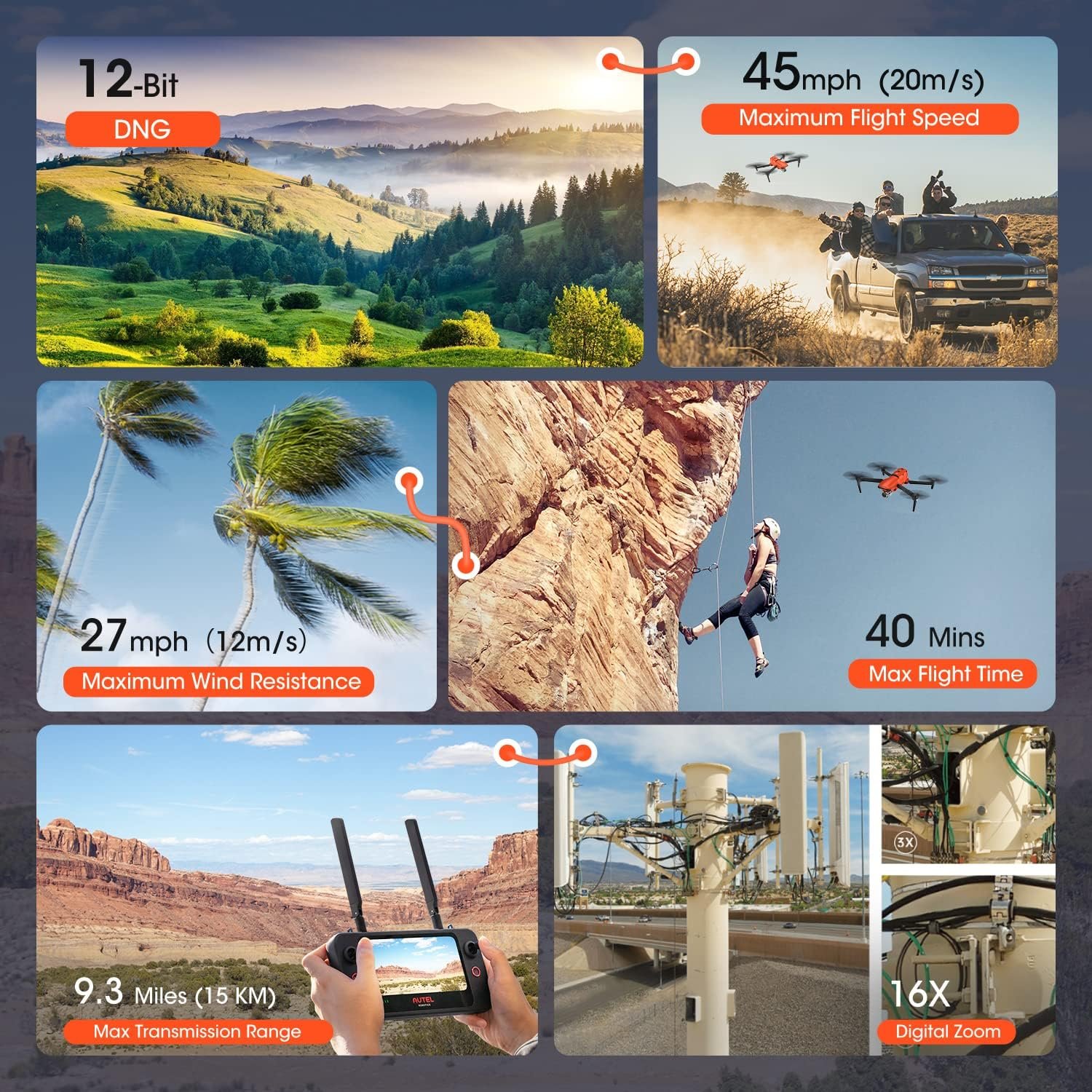 👍【12-BIT A-LOG POST PRODUCTION FLEXIBILITY & DYNAMIC TRACK 2.0】12-bit camera allows Autel EVO 2 Pro V3 to record up to 68.6 billion colors with 64 times the color rendering power of 10-bit (Version 2). The EVO II Pro V3 retains rich detail in shadows and highlights, allowing greater flexibility in post-production. Intelligent tracking utilizes deep learning algorithms to real-time detect pedestrians. Real-time tracking algorithms are employed to automatically track selected objects while avoiding obstacles during movement.