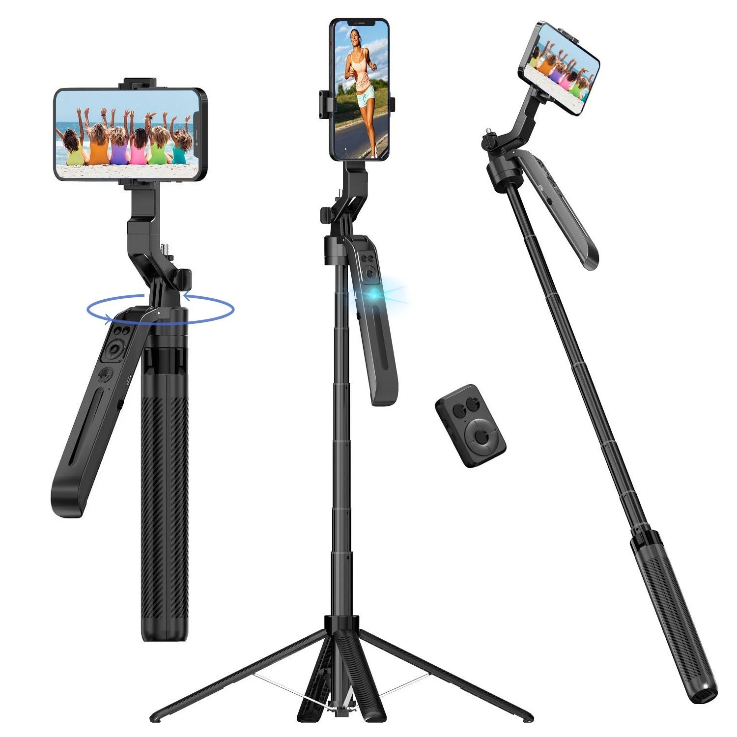 【All-in-one Selfie Stick Tripod Quadripod】Combine the functions of selfie stick, floor tripod, desk tripod and handheld phone stabilizer in one, the portable phone tripod with remoteisperfect for taking selfies & group photos, video recording,live streaming, vlogging, tiktok, adventure travel, etc.Compared to other traditional tracking phone holder, our 71″/6ft tracking tripod can be extendable from 12.6in to 70.9in (325mm-1800mm), provides the flexibility to choose the size that suits your shooting height.