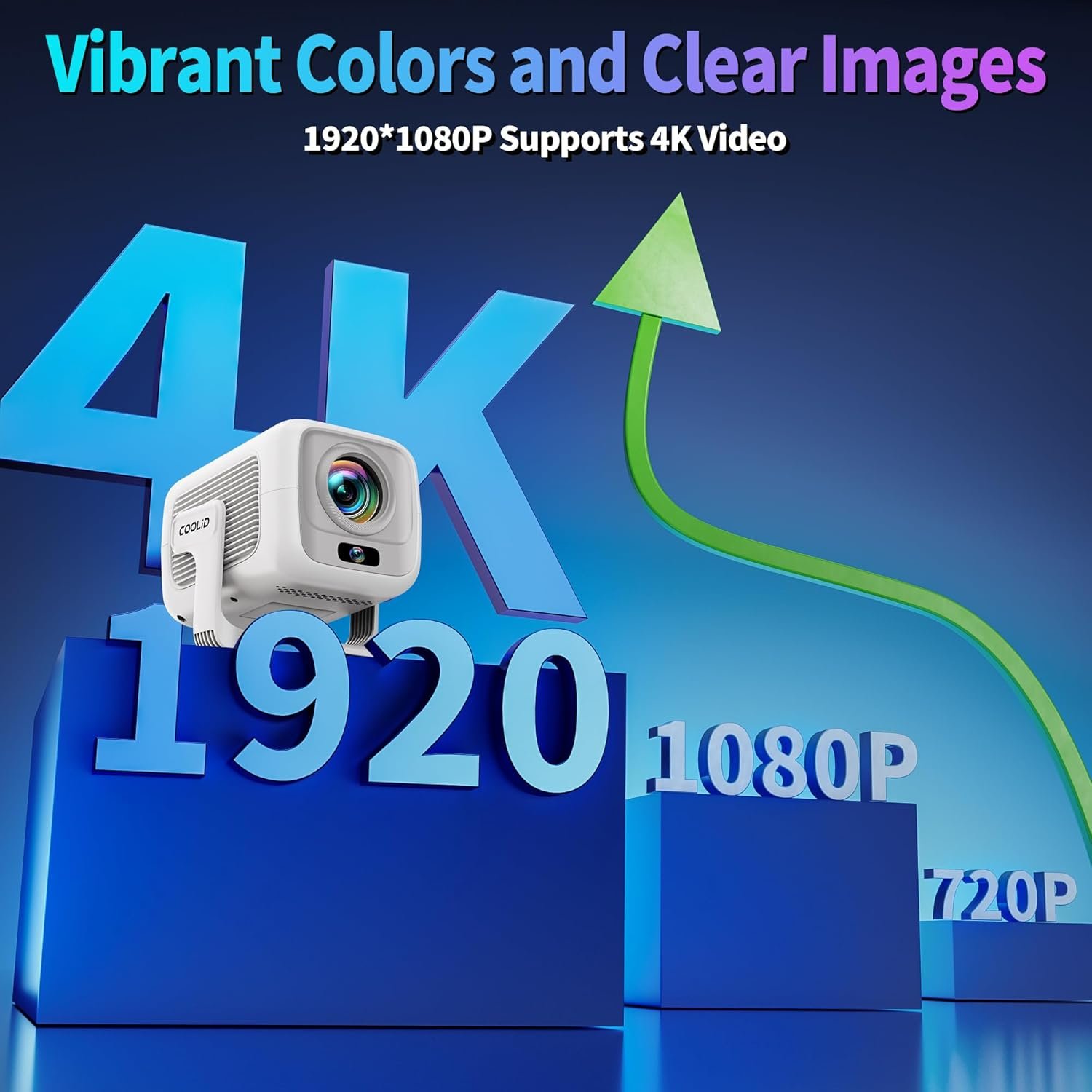 【True 1980×1080 Resolution with 4K Support】- Equipped with true 1920×1080 Full HD resolution and 4K Ultra HD video decoding, the Coolid projector features advanced LED technology, 1400 lumens of brightness, and a contrast ratio of 10,000:1. Whether you’re watching a movie, TV show, or playing a video game, it delivers an immersive visual feast. It brings a cinema-like experience to your home.